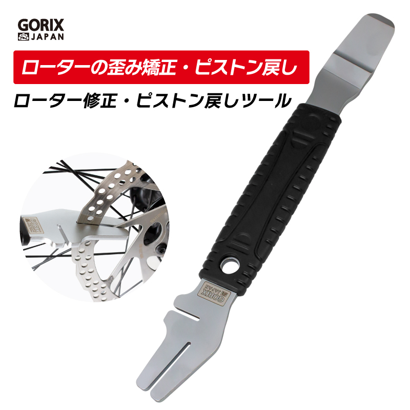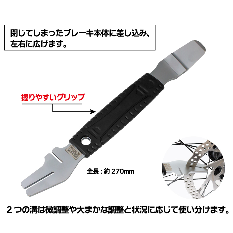 一つの工具でディスクローターの歪み修正と油圧ディスクブレーキのピストンを広げる事ができるマルチ工具です。 | |