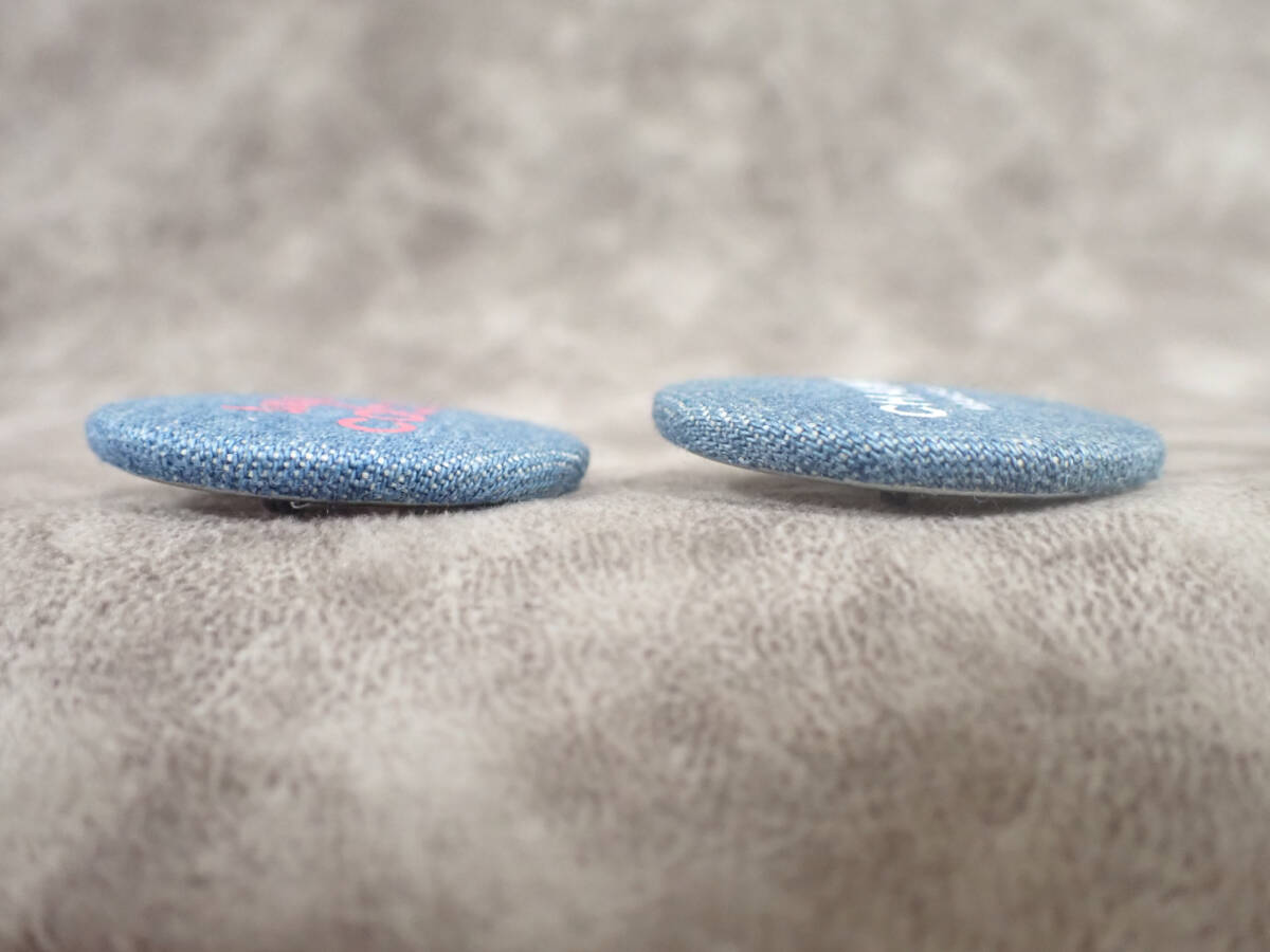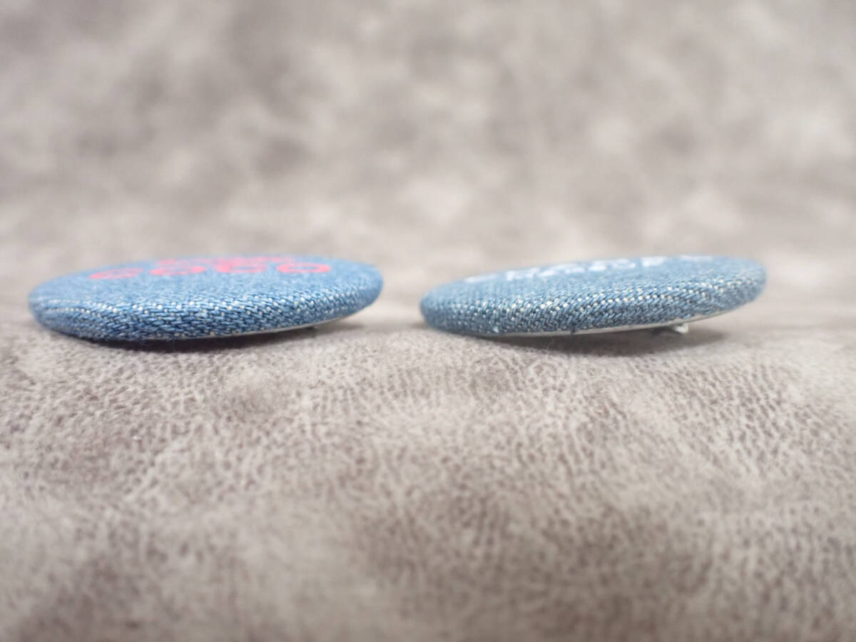 | コメント | 本商品はデニム生地の缶バッチ2点まとめの出品でございます。商品の状態は画像をご確認ください。2点まとめての出品でございます。大きな傷やシミはございません、まだまだお使いできるお品物でございます。本商品には付属品がございませんが、緩衝材を巻いて丁寧に梱包し発送させていただきます。注文確定後は1~2日以内に発送いたします。ぜひ、よろしくお願いします。 | |