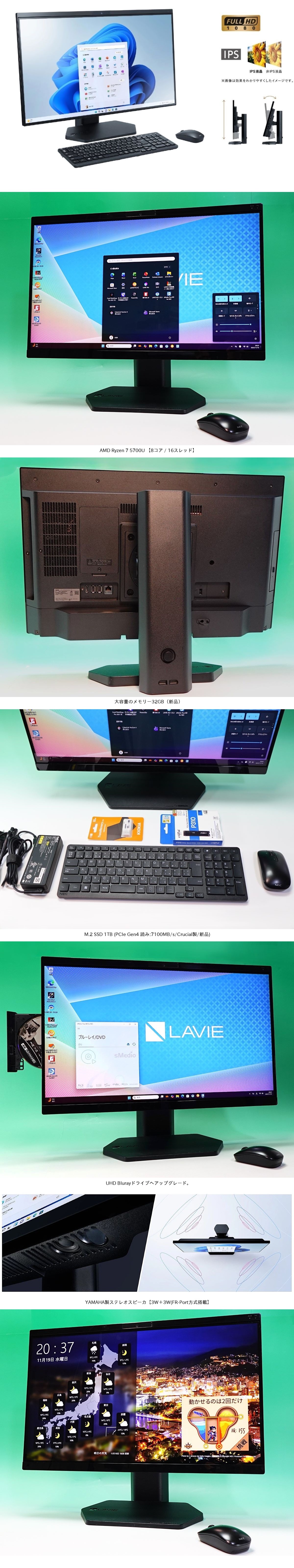 ・ 大容量・超速 SSD1TB (PCIe Gen4/新品) Crucial製 搭載。