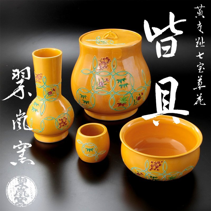 | 【古美味】中村翠嵐窯 黄交趾七宝草花皆具 茶道具 保証品 |