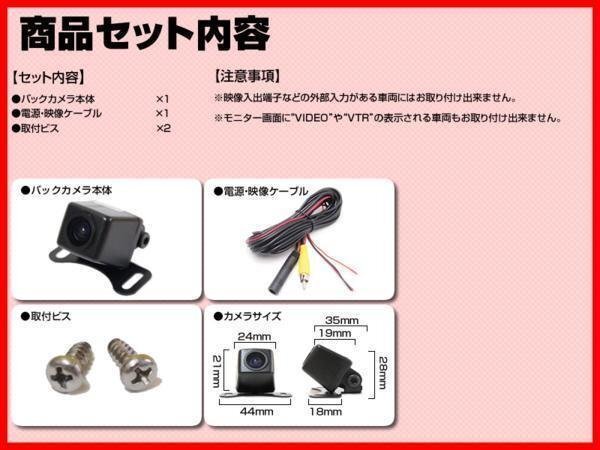 | ■視認性の高い広角タイプ 広角カメラなので視認性も高く、より確実な確認が出来ます。 また、バックカメラとして評価の高いCMOSセンサーを搭載しております。 ■汎用性の高いRCA接続 映像ケーブルは、RCA映像ケーブルとなります。 ※バックカメラ用のRCA映像入力があるカーナビ・モニター等へ接続出来ます。 ※注意事項※ メーカー純正品ではございませんので、純正品をお求めの方は購入しないで下さい。 |