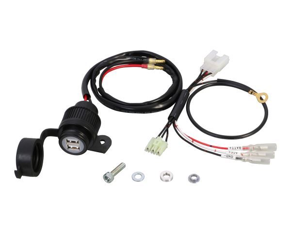| 〇仕様:2ポート ○USBポート:1,000mA×2個 ○DC5V 最大出力:2,000mA(1ポートのみ使用の場合) ○防滴仕様 ○LED内蔵(ブルー) モバイル電源供給に最適な2ポートタイプのUSB電源に専用ハーネスを付属した車種専用タイプです。 ※完全防水ではありません。洗車・雨天時は使用しないで下さい。また使用しないときは付属のゴムキャップを必ず装着してください。 ※温度変化等により本体(ゴムキャップ)内部に結露が発生する恐れがあります。温度変化の激しい場所(エンジン周り)は避け、こまめに確認し水滴は除去してください。(エアダスター、掃除機等で水滴を除去して下さい。)トラブルの原因になる可能性があります。 |