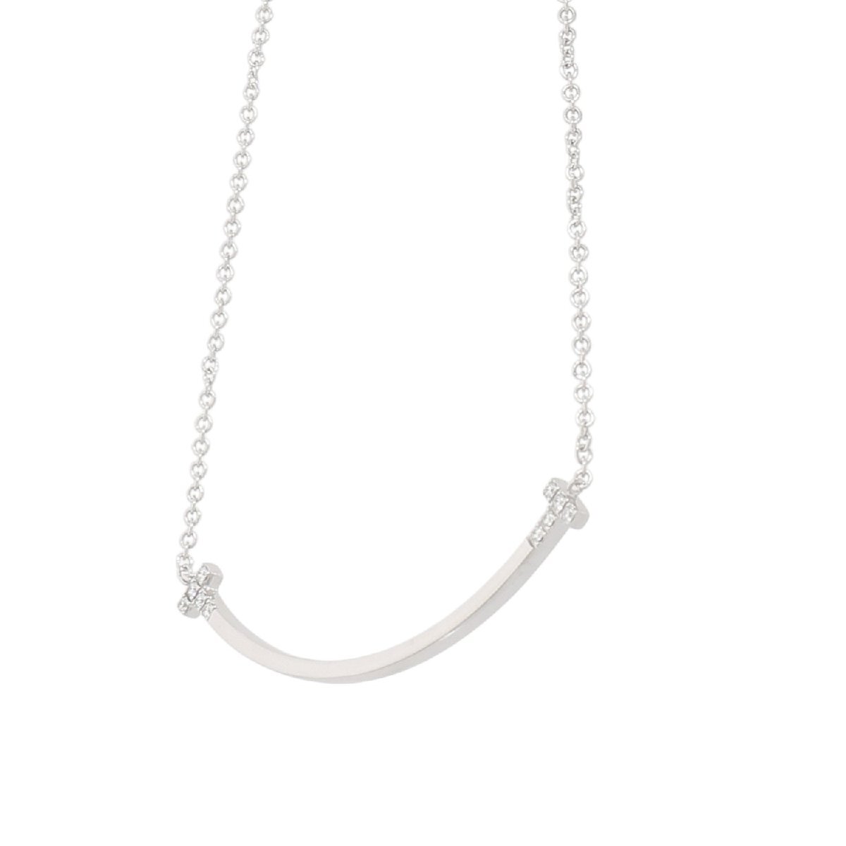 | モデルについて | 世界中を魅了する高級ジュエラーとして名高いティファニー。1837年から続く長い歴史の中で、数々の素晴らしいコレクションを生み出してきました。こちらのネックレスは、ブランドの頭文字でもあるTをモチーフとし、スマイルをイメージしてデザインされています。明るいホワイトゴールドとダイヤモンドが調和した、フェミニンで美しいネックレスです。 |