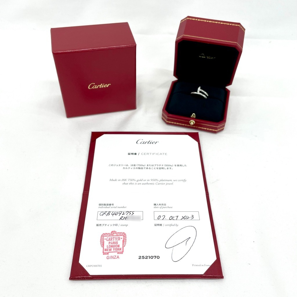 | モデルについて | 「一本の釘」という名の通り、釘をそのままリングにしたようなデザインをしています。その個性と美しさで多くの人々の心を釘付けにしてきた、カルティエの人気コレクションです。釘の両端には計22個ものブリリアントカットダイヤモンドがセットされており、お手元で美しく煌めきます。 |