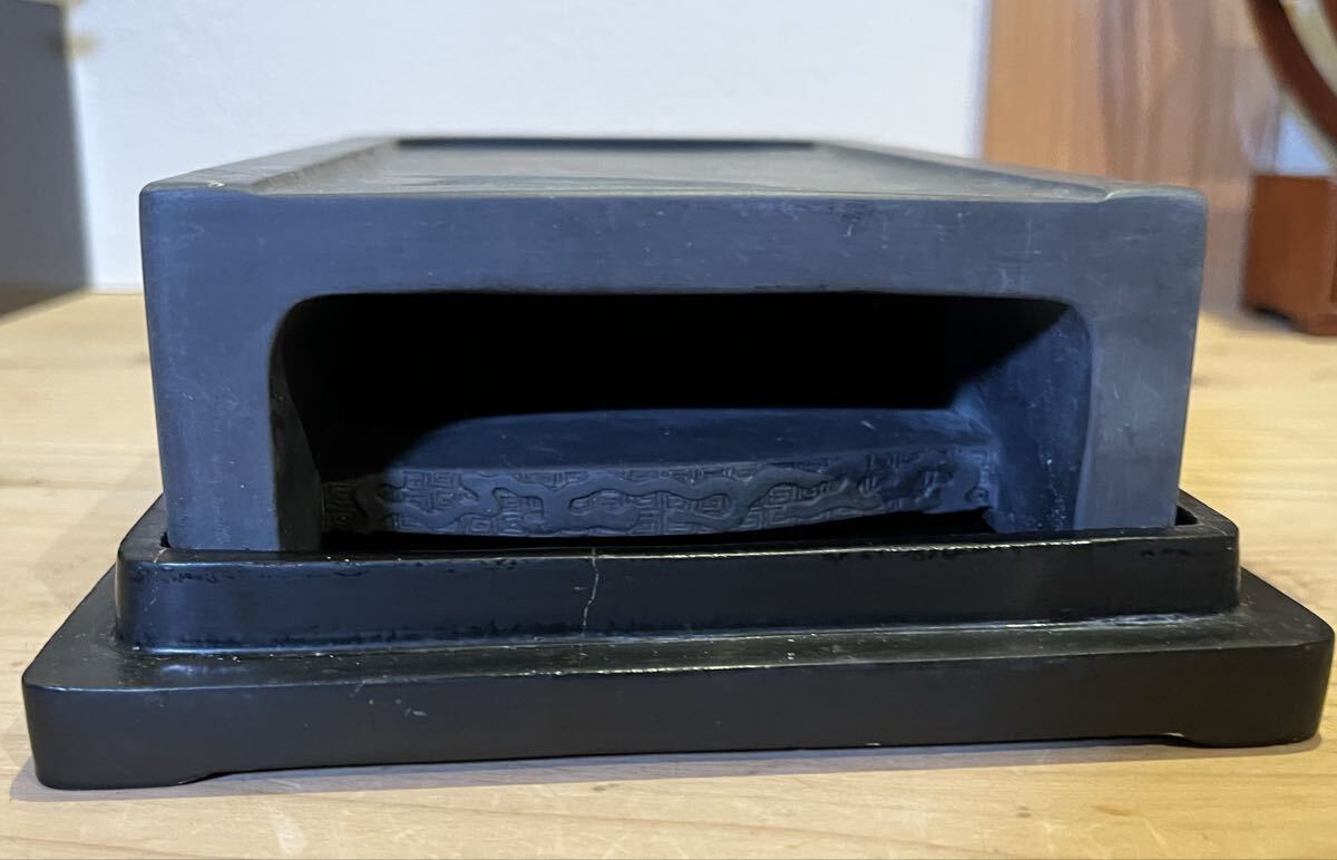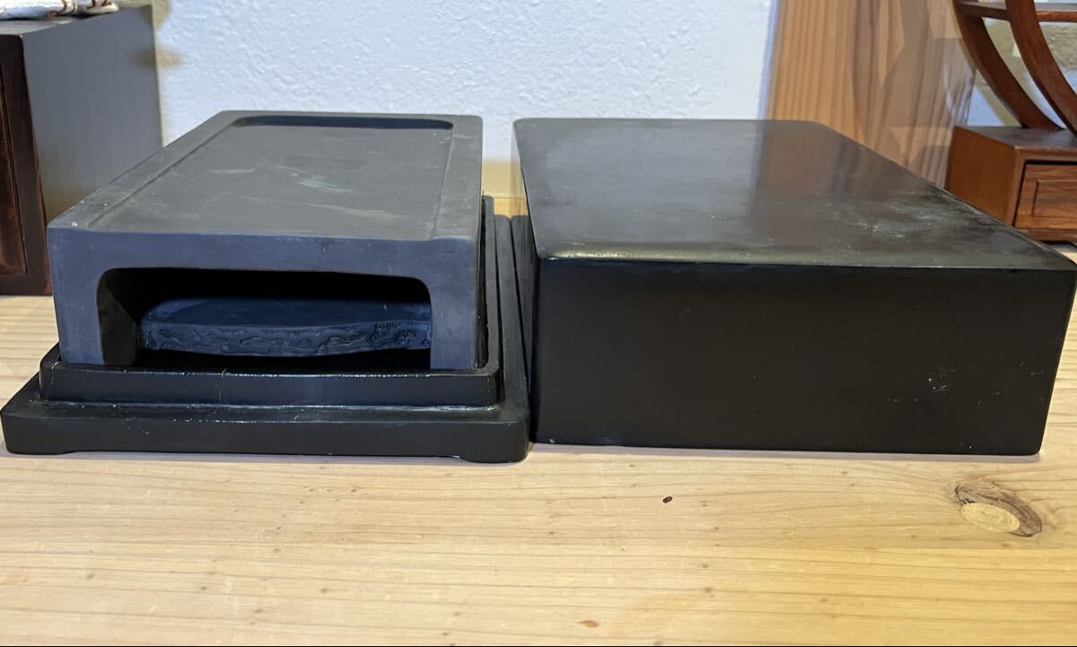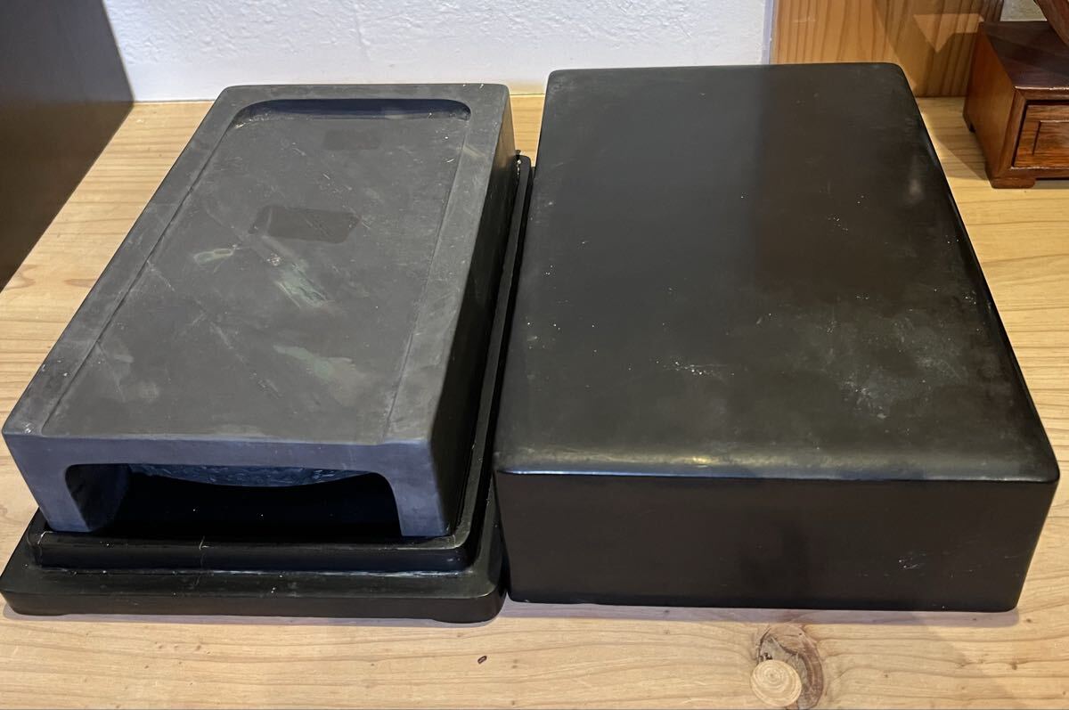 中国 古硯 老坑 書道 すずり 硯 収納箱割れあり 書道具です。