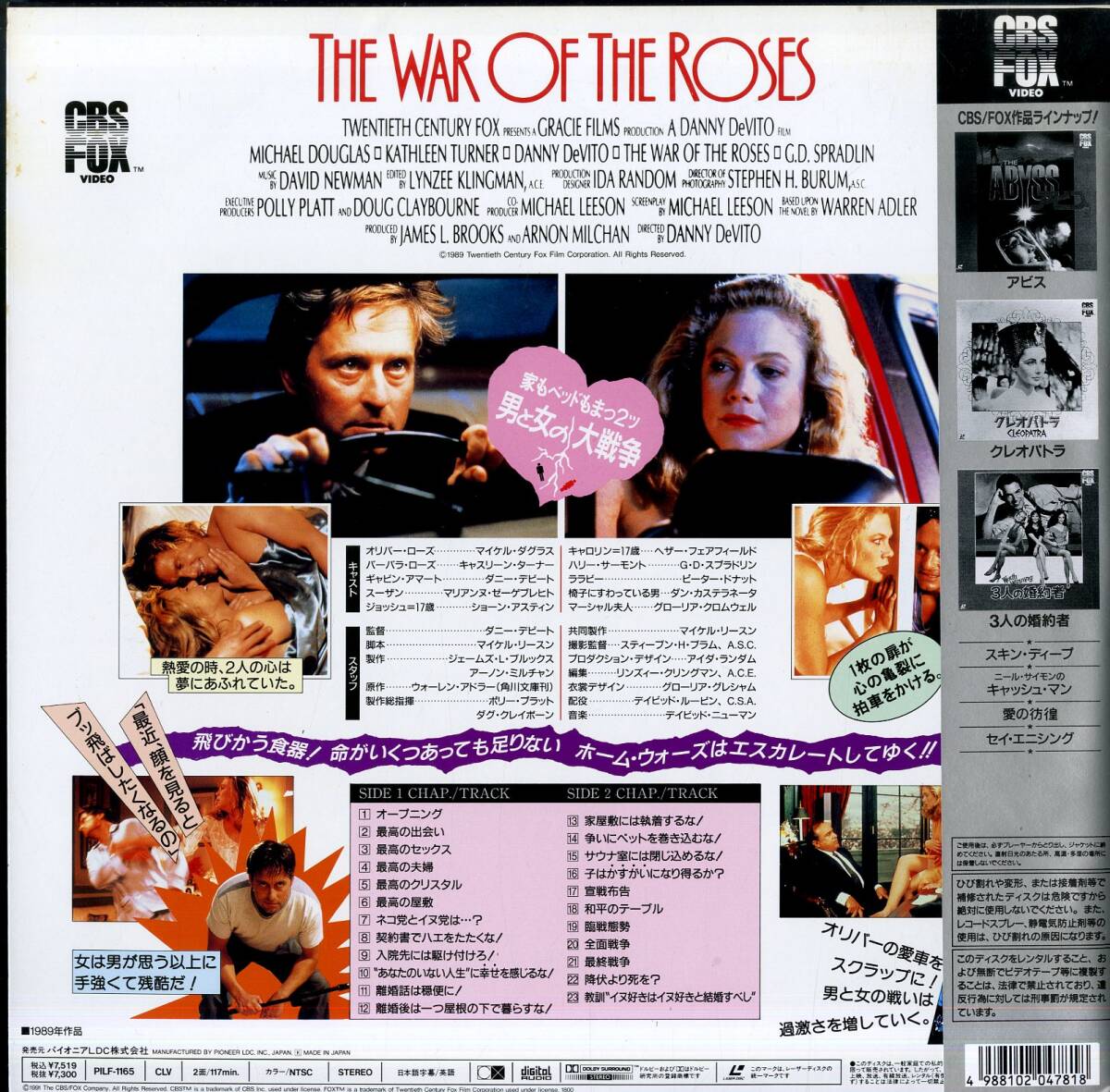 B00203702/LD/ダニー・デヴィート(監督・出演) / マイケル・ダグラス / キャスリーン・ターナー「ローズ家の戦争 The War Of The Roses 1
