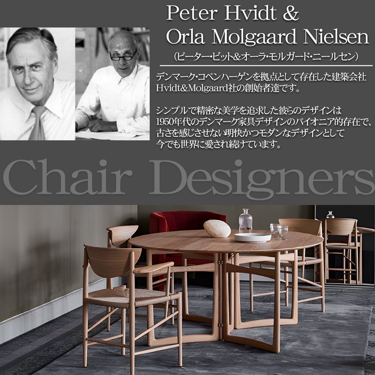 ![]() デンマークの中世デザインのパイオニア的存在ピーター・ビット&オーラ・モルガード・ニールセンが 1956年にデザインした「DRAWN ARM CHAIR HM4」 デンマークのモダニズムのリーダーとしての地位を確立し、 シンプルかつ精密な美学を追求した彼らの生み出すデザインは今でも古さを感じさせず、 どんなテイストのルームにも自然に馴染みます。 ビット&モルガードの2人は共に優れた技術力を持っており、 ピーター・ビットはコペンハーゲンの美術工芸学校でキャビネット作りを学び、伝統的な職人技を身に付け、 モルガードはデンマーク王立芸術アカデミーでカーレ・クリントに師事して家具デザインを学びました。 そんな高いレベルの技術力を持つ2人が作り出した名作チェアは空間をガラッと引き締め、 ワンランク上の北欧モダンなお部屋を作り出してくれます。 一番の特徴であるペーパーコードは、卓越した技術を持った職人による手作業で施され、 目を見張る完成度と美しさで一脚に使用されるペーパーコードの長さは400メートルにもおよび、 熟練の職人でさえ、一脚仕上げるのに8時間から10時間を要します。 DRAWN CHAIRは伝統的なクラフトシップとオーガニックな素材にこだわりデザインされています。 半月型の背もたれとアーム部のカーブにこだわっており、身体に沿うような仕様で、座り心地も抜群です。 デザイナー: ピーター・ビット/Peter Hvidt&オーラ・モルガード・ニールセン/Orla Molgaard Nielsen 材質 座面:ペーパーコード フレーム:無垢材(アッシュ) カラー:ペーパーコード座面:ベージュ フレーム部分:ナチュラル サイズ:約 幅64cm*奥行き55cm*高さ88cm*座面高45cm 重量:約6kg |