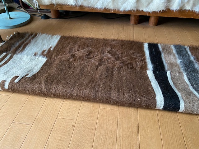 自然の山羊の毛を使って織られております。油分が多いので、ご理解いただける方のご入札をお願いいたします。