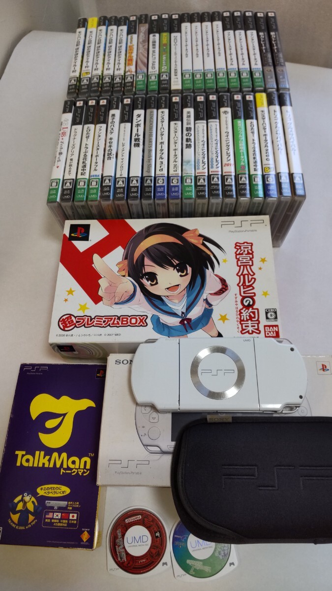 ソニー PSP-2000CWとその付属品です。 ゲームソフトは38枚、 全て説明書付きです。ゲームのみ2枚。| 出价者 | 信用 | 价格 | 时间 |