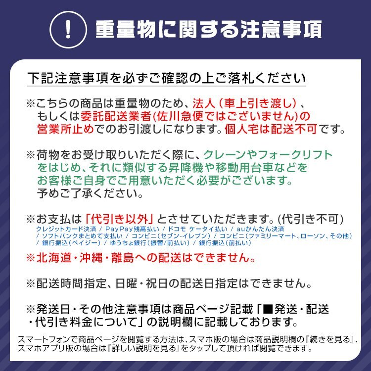 ★必ずお読みください★ ※重量物のため、配送業者の車上渡しとなっております。もしくは、委託配送業者の営業所止め(佐川急便ではありません) ※代引き不可 ※北海道・沖縄・離島は配送不可地域となります。 |