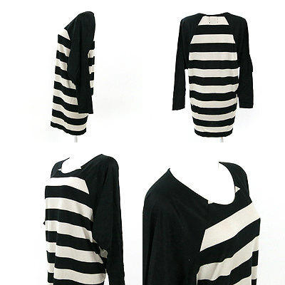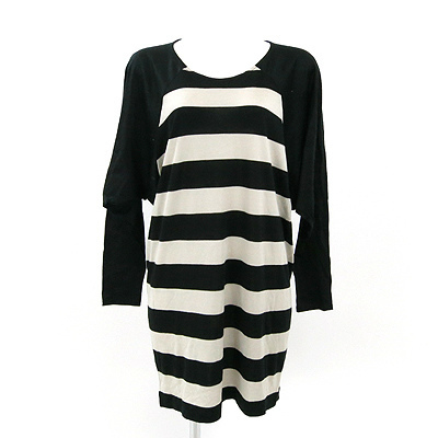 | 太めのボーダーが程よい存在感のおしゃれな一枚! レーヨンブレンドストレッチで滑らかな着心地も嬉しいです。 ドルマンスリーブでシルエットも美しく決まりますよ☆ 黒と薄グレーの組み合わせで大人っぽく着こなしていただけます。 サイドにベルトループがありますが、ベルトはございません。 着丈約82cm 裄丈約66cm バスト約108cm 【サイズ】:(S) 【素 材】:(レーヨン 50% コットン 30% 指定外繊維リヨセル 20%(袖 指定外繊維リヨセル 70% コットン 30%)) 【 色 】:(黒) 【程 度】:(A) 20111226-012 499 025 | ||||
