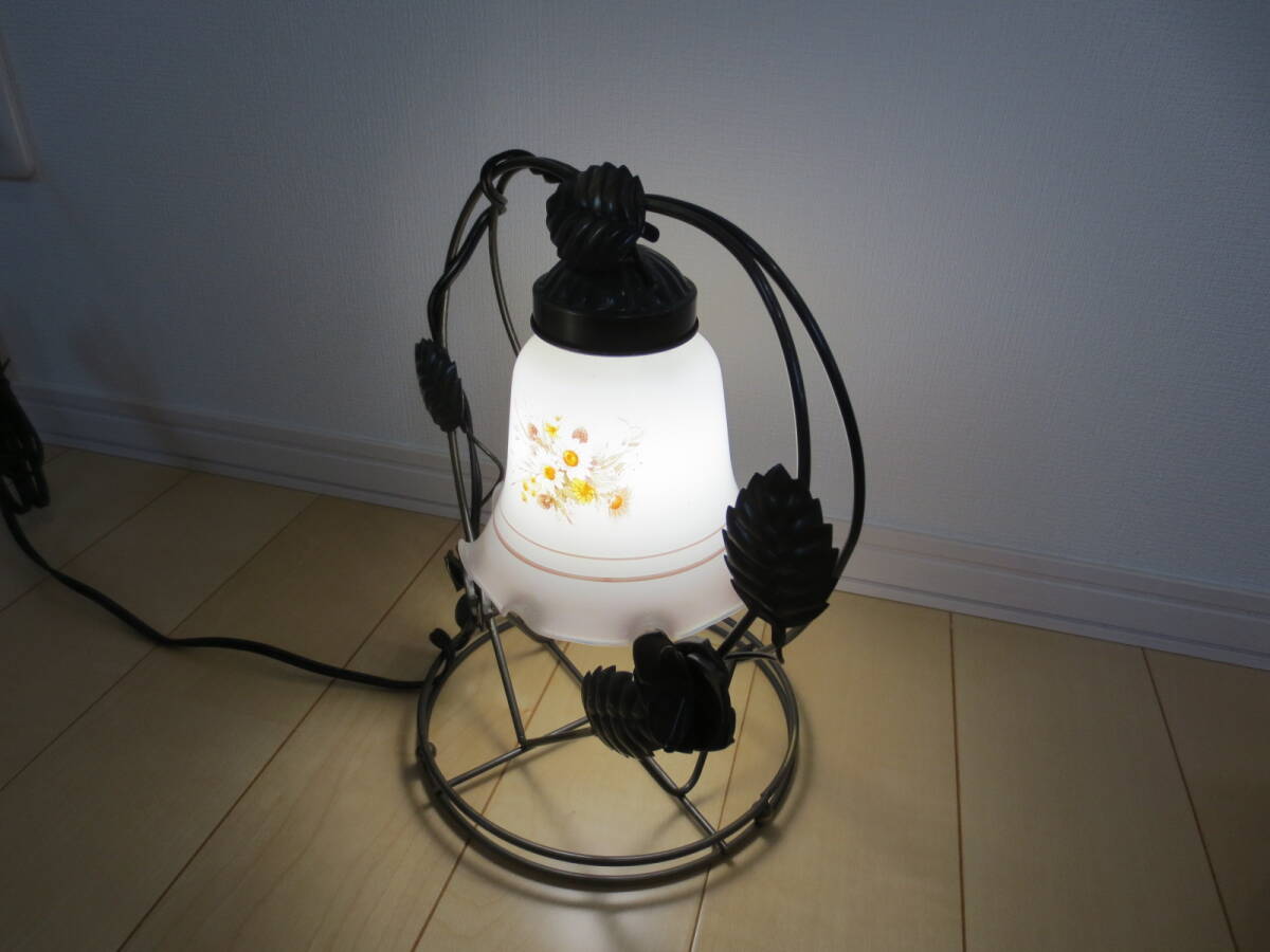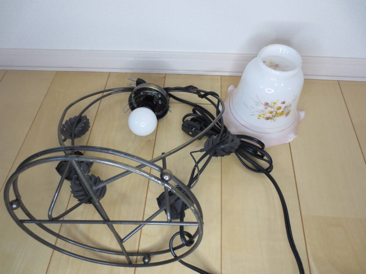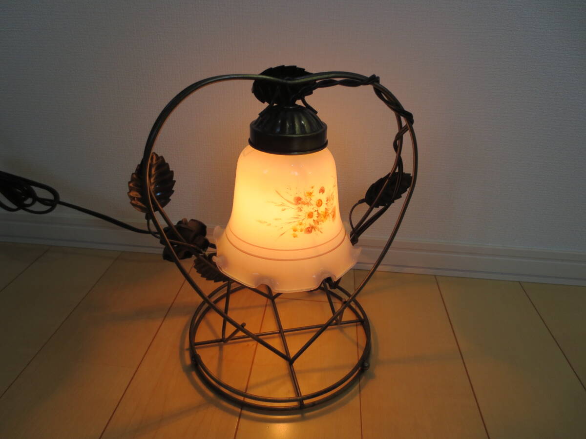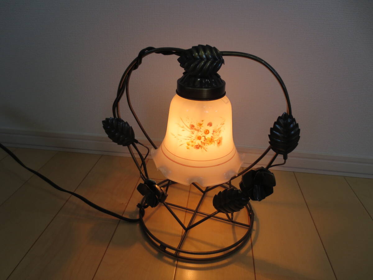 元々付いている白熱球の他にLED(昼白色)をお付け致しますので、2種類の灯りをお好みでどうぞ!白熱球はすごく熱くなりますので、やけどに注意してください。高さ約30センチ。取付はバネをつまんで笠の奥まで入れて放してください。