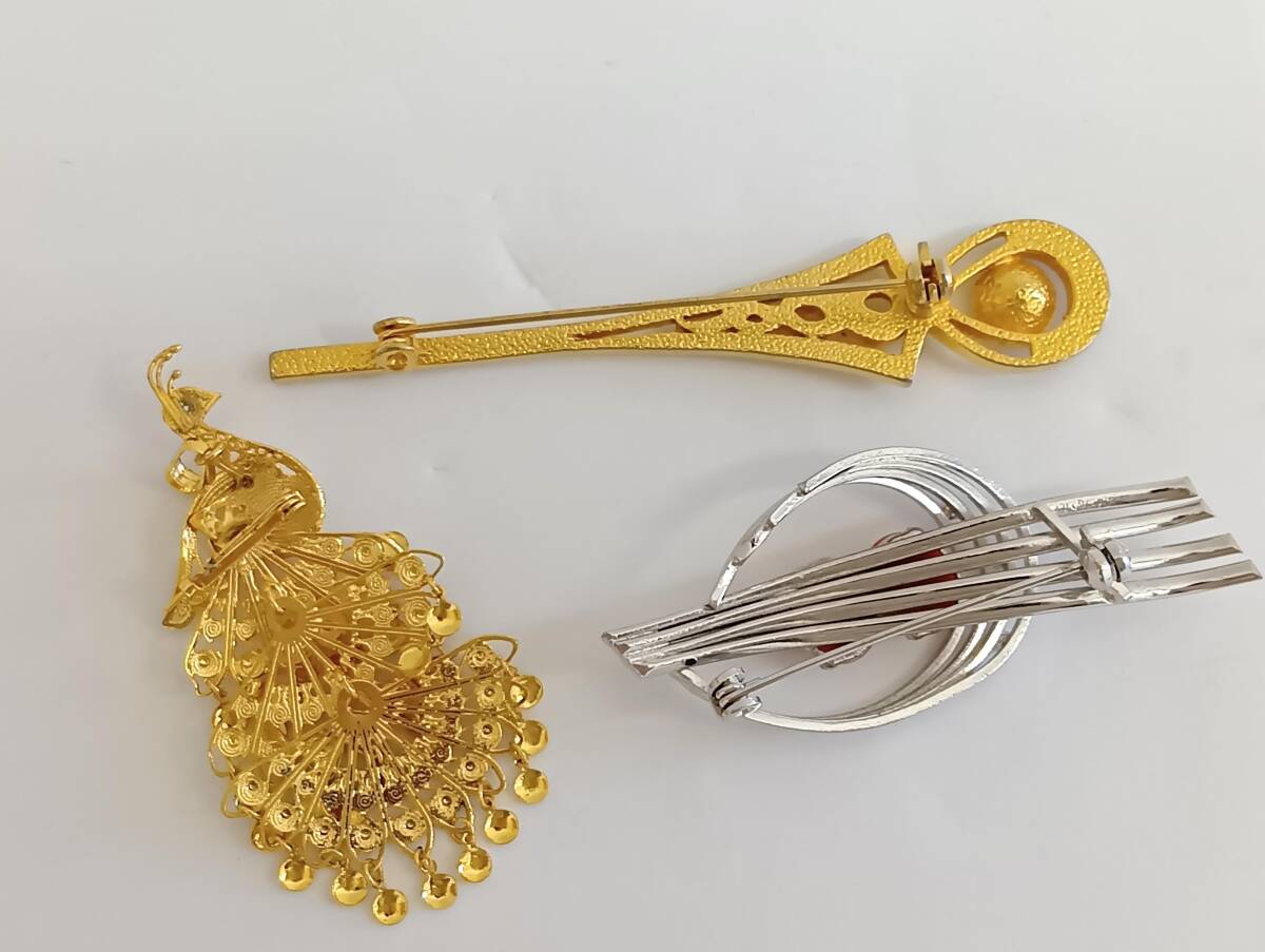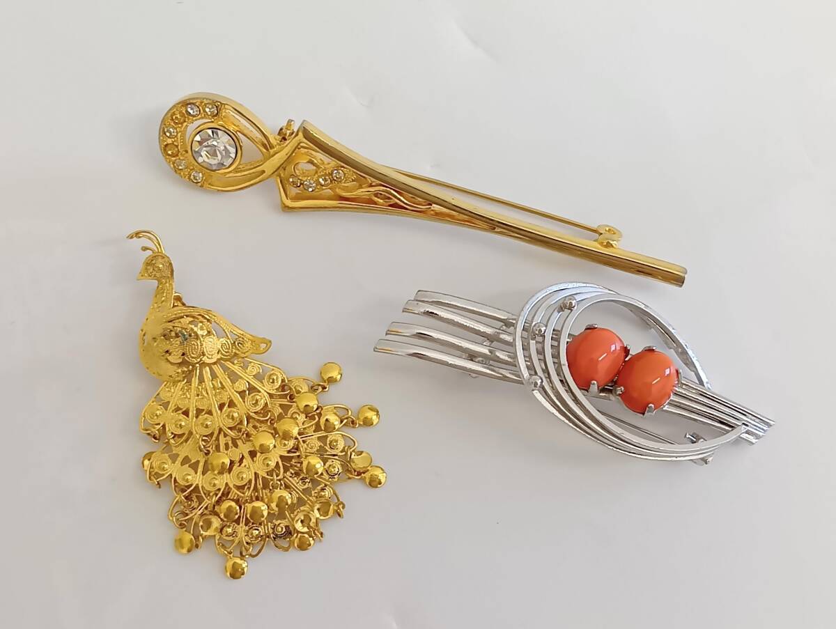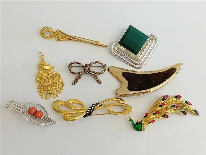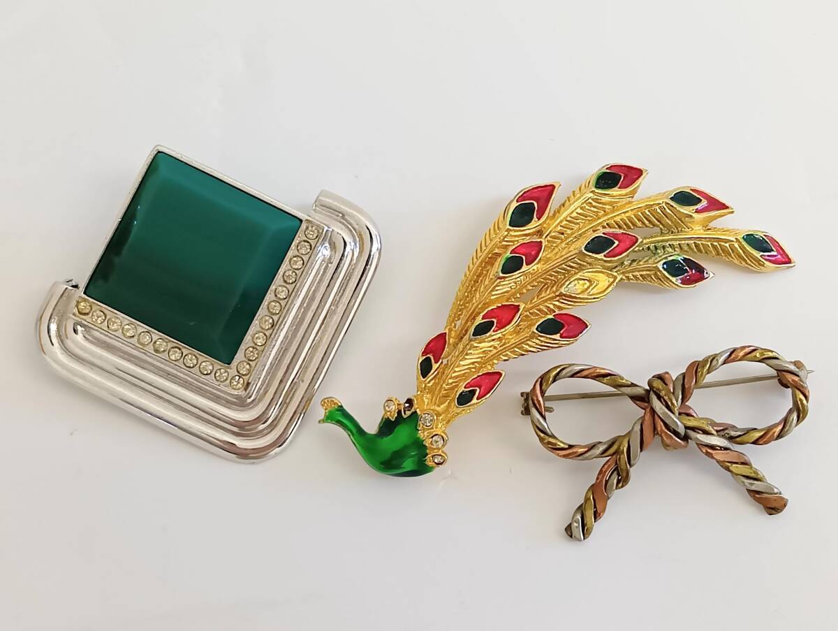 | ☆ブローチ まとめ8点 リボン クジャク 孔雀 ラインストーン カラーストーン 金メッキ 銀メッキ レトロ ヴィンテージ アクセサリー |