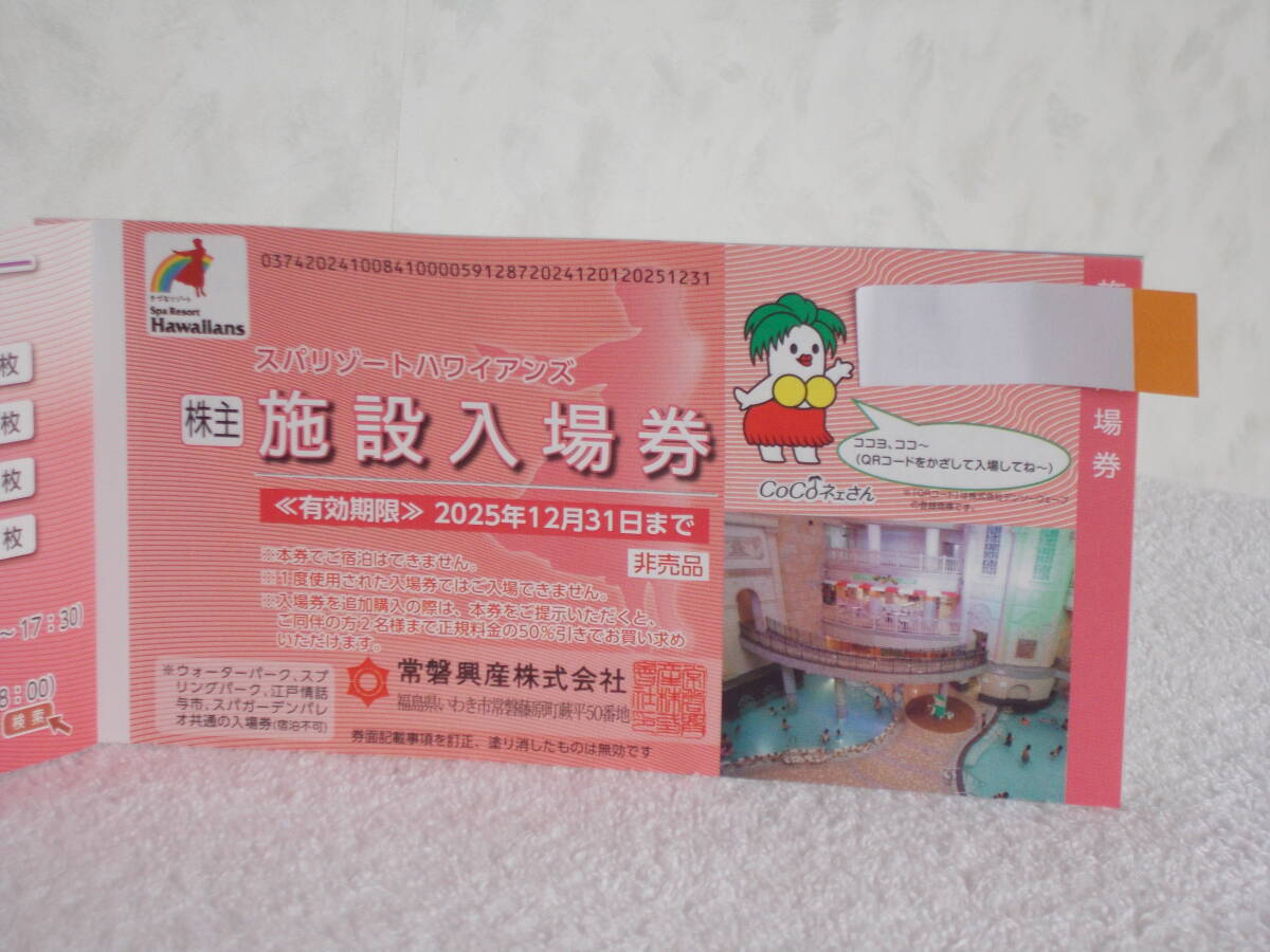 ハワイアンズ入場券1枚のみ 2025.12.31まで有効。郵送で送ります。110円です。日程の調整は自分でしてください。こちらは発注があれば直ぐ送るだけです。