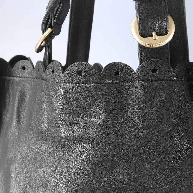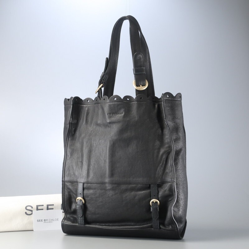 | MI3545▼シーバイクロエ SEE BY CHLOE*スカラップ レザー トートバッグ 鞄 A4対応 ブラック | |||