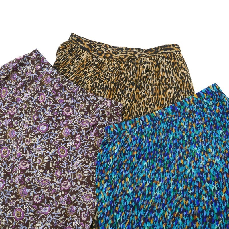 (※念の為、商品実寸をご参考下さい。) 商品実寸 レオパード柄のスカート ウエスト :約70cm ヒップ幅 :約50cm 総丈 :約84cm 小花柄フレアスカート ウエスト :約68cm ヒップ幅 :約52cm 総丈 :約70cm ウエスト :約66cm ヒップ幅 :約50cm 総丈 :約65cm |