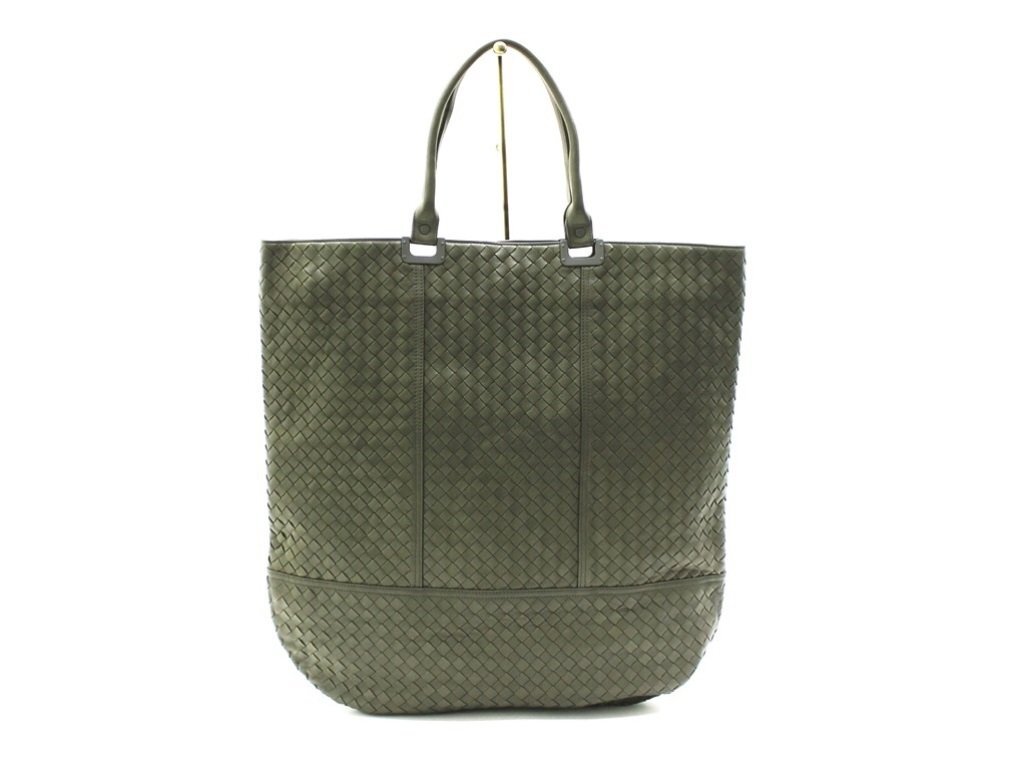 90万新品◆ボッテガヴェネタ◆BOTTEGA VENETAイントレチャート ラムレザー縦型トートバッグ ファスナー付き グレージュ灰