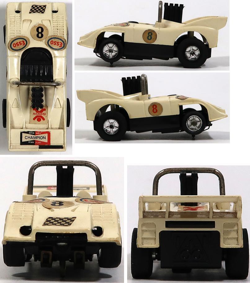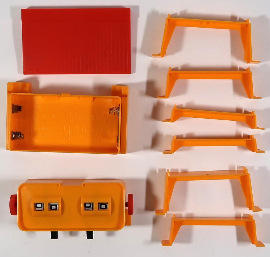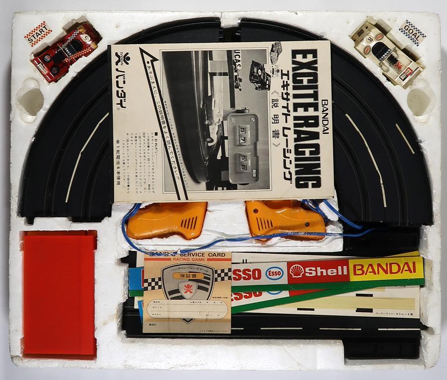出品は画像の物が全てです。ステッカーなどの多少の備品は不足しているかと思われます。箱は所々に破れや汚れがあります。本体やレールなどの備品に汚れや擦れが有ります。レールの鉄部に錆があります。発砲が経年劣化でとけてスロットのコードについています。カウンターの片方を指で回すつまみがうまく回りません。00に戻したい場合は一気に回転させる事ができないので、下のつまみを一つずつ押していくしかないです。もう片方のカウンターは問題なく回せます。車はカウンターを通ればカウンターはきちんと動作します。両方のスロットカーのタイヤが劣化しております。走らせ続ければすぐにぼろぼろになるかと思います。電池を入れてテストしましたが、通電しないので一切の動作確認は取れておりません。何が原因かわかりません。
