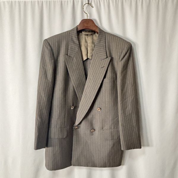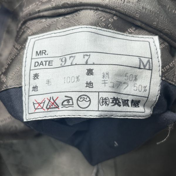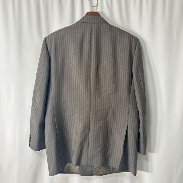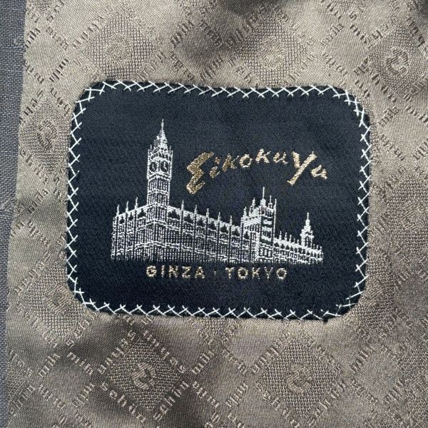 銀座の老舗テーラー「英國屋」で仕立てられたオーダーメイドのダブルジャケットです。 イタリア製TESSUTI UOMO生地を使用し、上質なウール100%素材で柔らかな手触りと上品な艶感が特徴。 クラシカルなブラウンストライプ柄にピークドラペルのデザインが映える一着です。 裏地は総裏仕立てで、英國屋ロゴが織り込まれた高級感ある仕上がり。 フォーマルからビジネスまで幅広いシーンでご着用いただけます。 【サイズ(cm)】 肩幅 47 / 身幅 55 / 袖丈 60 / 着丈 83 ※平置き採寸のため、多少の誤差はご了承ください。 【素材】 表地:ウール100% 裏地:シルク50%、キュプラ50% 画像のものが全てです。