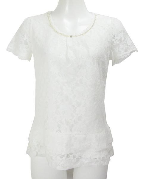 | 薄手カーディガンと総レースのトップスのセットアップ。セット感のない素材なので、単品使いセットアップ使いが楽しめます。お首周りにはパールビジューがついていて、華やかなデザイン。シンプルなので、活躍してくれます。 |