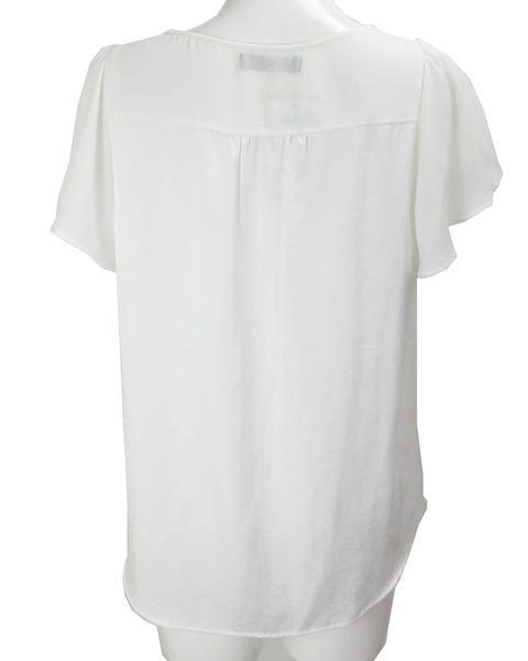 | コメント | シンプルデザインで着回しの効くブラウス。 首周りにお大き目ビジューがついていて、華やかな雰囲気。 フロントにはプリーツが入っているので、ゆったりとした シルエットです。 お袖がエアリーなシフォン素材で可愛いデザイン。 |