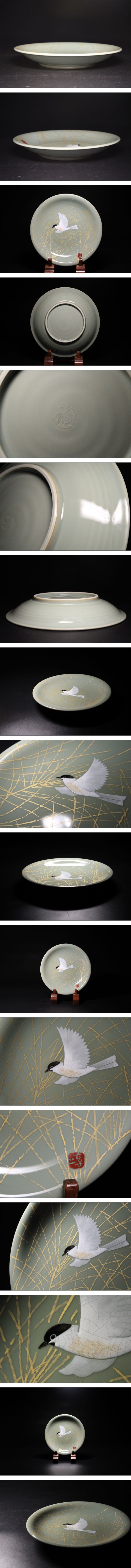 | 商品説明 | 状態 : 無傷 権威ある日本画家 上村淳之による絵付けの飾り皿です。 金彩の草文様に羽ばたく鳥、均一に施された青磁に非常に良く映えます。 中々お目に掛かれないと思いますので、この機会に是非如何でしょうか。 径 23.2cm 寸法 : 高さ 3.7cm 箱 : 共箱 共布 栞付 |