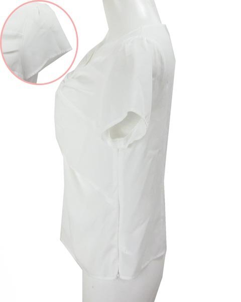 | 上品な半袖のブラウス。薄手のさらっとした生地。きちんと感があり、ビジネスシーンからオフの日までお使い頂けます。 |