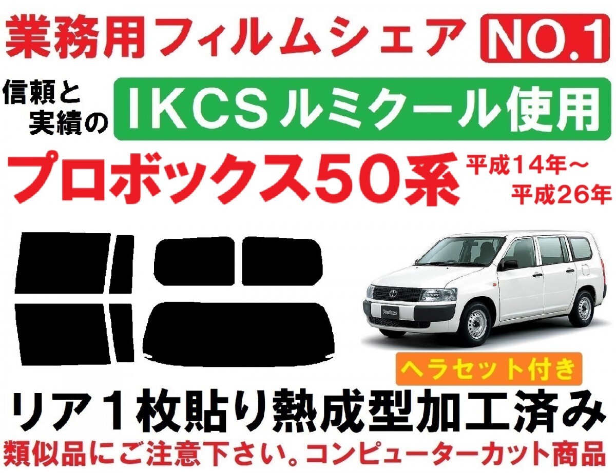 | プロボックス 50系用『IKCSルミクール使用』1枚貼り成型加工済みフィルム リア5面セットです。(専用施工液付き) ・信頼の品質と実績で永い間業務用フィルムとして選ばれ続けているIKCS製品です。 ・業務用フィルムの中で最も信頼性の高い、ベストセラー商品です。 ・詳しくはIKCS株式会社HPをご覧ください。 ※『ルミクール』は当店でも 施工実績・販売実績NO.1の超人気商品です。 ※注意:プロボックス用です。サクシードには適合しません!! 平成14年7月~26年8月 NCP50V NCP51V NCP52V NCP55V NCP58G NCP59G NLP51Vに適合します。 平成26年9月以降の160系は こちら に出品中です。 ※適合等 ご不明な点など有りましたら、お気軽にご質問下さい。 ◇◆◇当商品には、画像2のヘラセットが付属します◇◆◇ ■滑りの良いシリコンタイプのゴムヘラ スムーズに水切り(清掃)・貼り付け後の水抜きが出来ます。 実際の業務でも色々な物を試しましたが、シンプルなこの形状・このメーカー・このグレードの物が1番使いやすいです。 柔軟性が有りガラス(フィルム)に密着するため、フィルム折れも防げます。 ■使いやすい厚みとコシの有るプラヘラ 形状は似ていても各メーカーにより硬さ・厚みなど色々と有ります。 慣れていない方でも扱い易いように少々柔らか目の物になります。 ヘラ先にはフッ素樹脂加工のクロスを貼って有りますので、滑りが良くキズを防止します。 ■ワイプオール(不織布ワイパー) 布同様の丈夫さと紙の持つ吸水性を発揮。糸くずの発生が無く均一素材のため異物混入の心配が有りません。 施工前のガラスクリーニング~施工時にフィルムが触れる可能性の有るガラスの周りのゴム部品の拭き取り清掃~吸水等に大変便利です。 全て実際の業務に使用している物で、その中から使いやすい物を選んでいます。 ヘラセットがご不用の場合、フィルムのみの商品も有ります。こちら ◇◆◇精密コンピューターカット◇◆◇ 貼りやすさを最優先に各部のサイズ・形状など微調整し、改良を重ねた独自のデータを製作。 高精度な最新・大型カッティングプロッターによるカットで正確で滑らかなカットラインを再現しています。 施工業者だからわかる、貼りやすいサイズ・形状に仕上げています。 ◇◆◇リア1枚貼り成型加工済み◇◆◇ リアガラスの湾曲に合わせて熱成型加工して有りますので、平面に貼るのと同様にたるみが出ず1枚貼り出来ます。 ※最適な状態に成型加工して有りますので、ヒートガン(ドライヤー)等は不要です。 リアの他、ドア2面もたるみが出やすいので成型加工しています。 ◇◆◇専用施工液付属◇◆◇ 軽視されがちな施工液ですが、貼りやすさに大きく関わる部分になります。中性洗剤などで代用せず、必ず付属の専用施工液をご使用下さい。 濃度については車種・季節などにより変わりますので、個別にお知らせ致します。 国内シェアNO.1の『ルミクール』を使用しています。 ルミクールは経年退色が極めて少ない着色加工技術はもちろん、安定した冷暖房効率をアップする熱線遮断効果や断熱効果、内装を守り日焼けを防ぐため、全てのフィルムで99%の紫外線カットを実現しています。 ガラスの飛散防止効果で高い安全性を保ち、ハードコートタイプなのでキズにも強いカーフィルムです。 改良を重ねながら 信頼の品質と性能で、永い間業務用フィルムとして選ばれ続けています。 ■フィルムの種類■ 可視光線透過率 3% NS-003HC 可視光線透過率 7% NS-008HC 可視光線透過率13% NS-015HC 可視光線透過率20% NS-020HC 可視光線透過率30% NS-030HC 可視光線透過率46% NS-045HC ■全商品、キズに強いハードコート・紫外線(UV)99%カットです。 ※可視光線透過率が低くなるほどフィルムの色は濃くなります。 サイドとリアで濃さを替えたり等、可能です。 部分的にフィルムが必要になった場合、単品販売も承ります。 他にもプロボックス用フィルム、各種出品中です。こちらもご覧ください。 ご不明な点など有りましたら、お気軽にご質問下さい。 | ||