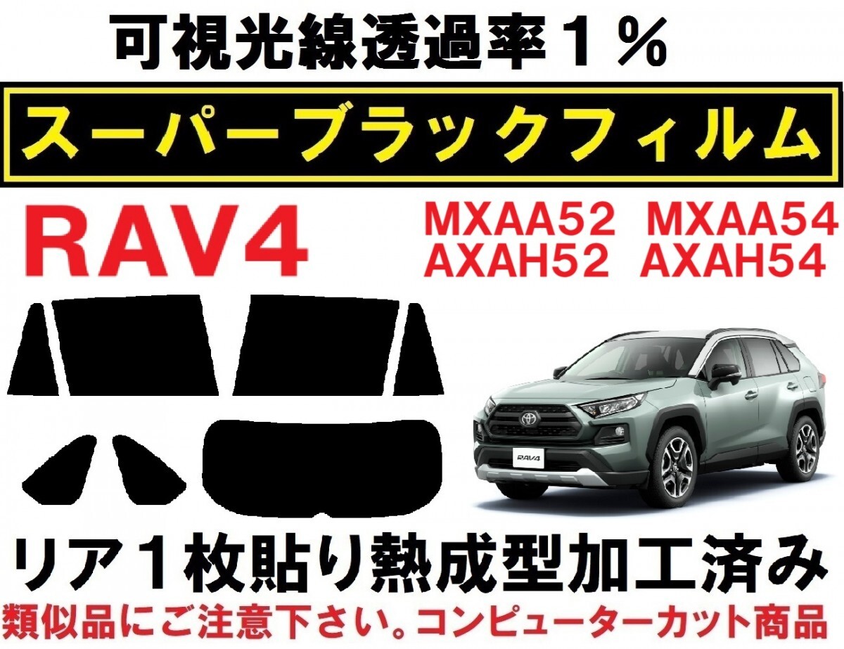 RAV4用スーパーブラック『可視光線透過率1%』1枚貼り成型加工済みフィルム リア5面セットです。(専用施工液付き) 平成31年4月~ MXAA52 MXAA54 AXAH52 AXAH54 RAV4 RAV4ハイブリッド に適合します。 画像2、デジタルインナーミラー、カメラ部分の切り抜きも出来ます。 ※適合等 ご不明な事など御座いましたら、お気軽にご質問下さい。 ◇◆◇施工に便利なプロ仕様のヘラセット付き商品も出品中です◇◆◇ こちら ◇◆◇精密コンピューターカット◇◆◇ 貼りやすさを最優先に各部のサイズ・形状など微調整し、改良を重ねた独自のデータを製作。 高精度な最新・大型カッティングプロッターによるカットで正確で滑らかなカットラインを再現しています。 施工業者だからわかる、貼りやすいサイズ・形状に仕上げています。 ◇◆◇リア1枚貼り成型加工済み◇◆◇ リアガラスの湾曲に合わせて熱成型加工して有りますので、平面に貼るのと同様にたるみが出ず1枚貼り出来ます。 ※最適な状態に成型加工して有りますので、ヒートガン(ドライヤー)等は不要です。 ◇◆◇専用施工液付属◇◆◇ 軽視されがちな施工液ですが、貼りやすさに大きく関わる部分になります。中性洗剤などで代用せず、必ず付属の専用施工液をご使用下さい。 濃度については車種・季節などにより変わりますので、個別にお知らせ致します。 ◇◆◇業務用高品質フィルム使用◇◆◇ 使用しているフィルムは、安心の国内メーカー 業務用高品質フィルム「ニュープロテクション」シリーズです。(可視光線透過率1%) 業務用フィルムの中で最も濃いタイプで、紫外線99%カット 遮熱性も高めです。 同シリーズで可視光線透過率 5% 10% 15% 25% の物もご用意出来ます。 ご希望の場合は、ご落札後濃さの指定をして下さい。(部分的な色変えも可能です) ご指定の無い場合、全て1%になります。 部分的にフィルムが必要になった場合、単品販売も承ります。 他にもRAV4用フィルム、各種出品中です。こちらもご覧ください。 ご不明な点など有りましたら、お気軽にご質問下さい。 | ||