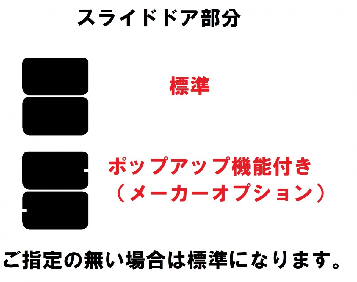 S700M S710M ピクシスバン 用スーパーブラック『可視光線透過率1%』1枚貼り成型加工済みフィルム リア5面セットです。(専用施工液付き) 令和3年12月~ S700M S710M に適合します。 ●画像2 メーカーオプション、ポップアップ機能付きガラス(スライドドア部分)にもご対応出来ます。 ●画像3 メーカーオプションのスマートインナーミラー、カメラ部分の切り抜きにもご対応出来ます。 ※どちらも、ご指定の無い場合は標準カットとなります。 ※適合等ご不明な事など御座いましたら、お気軽にご質問下さい。 ◇◆◇プロ仕様のヘラセット付き商品も出品中です◇◆◇ こちら ◇◆◇精密コンピューターカット◇◆◇ 貼りやすさを最優先に各部のサイズ・形状など微調整し、改良を重ねた独自のデータを製作。 高精度な最新・大型カッティングプロッターによるカットで正確で滑らかなカットラインを再現しています。 施工業者だからわかる、貼りやすいサイズ・形状に仕上げています。 ◇◆◇リア1枚貼り成型加工済み◇◆◇ リアガラスの湾曲に合わせて熱成型加工して有りますので、平面に貼るのと同様にたるみが出ず1枚貼り出来ます。 ※最適な状態に成型加工して有りますので、ヒートガン(ドライヤー)等は不要です。 ◇◆◇専用施工液付属◇◆◇ 軽視されがちな施工液ですが、貼りやすさに大きく関わる部分になります。中性洗剤などで代用せず、必ず付属の専用施工液をご使用下さい。 濃度については車種・季節などにより変わりますので、個別にお知らせ致します。 ◇◆◇業務用高品質フィルム使用◇◆◇ 使用しているフィルムは、安心の国内メーカー 業務用高品質フィルム「ニュープロテクション」シリーズです。(可視光線透過率1%) 業務用フィルムの中で最も濃いタイプで、紫外線99%カット 遮熱性も高めです。 同シリーズで可視光線透過率 5% 10% 15% 25% の物もご用意出来ます。 ご希望の場合は、ご落札後濃さの指定をして下さい。(部分的な色変えも可能です) ご指定の無い場合、全て1%になります。 部分的にフィルムが必要になった場合、単品販売も承ります。 他にもピクシスバン用フィルム、各種出品中です。こちらもご覧ください。 ご不明な点など有りましたら、お気軽にご質問下さい。 | ||
