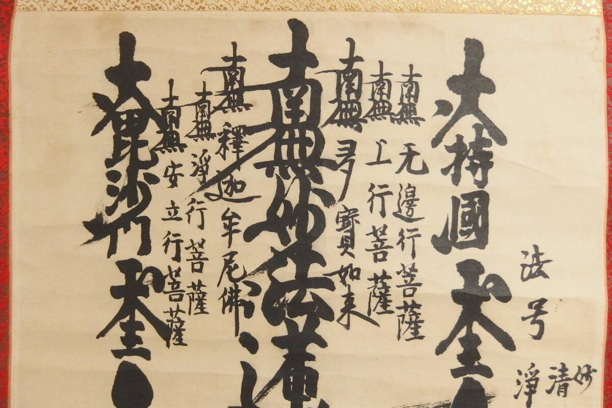 ●ご覧頂きまして誠にありがとうございます。 今回の出品は【251128-8】【真筆】昭和時代 日蓮宗 曼荼羅掛軸 紙本 蒔絵軸先です。 時代なりの汚れや経年による傷み、くすみ、シミ、着色汚れ、シワ、折れ目などはありますので画像にてご確認下さい。 ※当商品の大きさ、形状及び梱包上の都合により他商品との同梱配送・「まとめて取引」にはご対応致しかねます。 また、複数日にわたる取り置きにもご対応致しかねますので、複数商品をご落札頂いた場合でも「単品で取引する」をご選択の上お手続きいただきますようお願いいたします。 予めご了承下さいますよう宜しくお願い致します。 この機会に是非お手元にお納め下さい。 【サイズ】 軸長:約57.6cm 画寸 縦:約65.3cm、横:約34.3cm ※手計測ですので若干の誤差はございます。 予めご理解をいただいた上でご入札ください。 ※留意点 当方では美術品の出品において、特定の作者の作品と記載、もしくは署名落款がある場合、【真作】または【模写】と記載しております。 タイトルにございます分類は下記の通りとなります。 ご確認の上、十分にご検討いただきご入札をお願い申し上げます。 【真作】【真筆】真作・真筆作品。本物であると断定できる作品。 ※【真作】【真筆】と表記のある商品につきまして、万が一所定鑑定機関にて真作でないと鑑定された場合は内容証明書を提示頂ければ落札代金をご返金の上ご返品に応じさせていただきます(落札日より60日以内)。 鑑定費用その他諸経費等は落札者様ご自身のご負担となりますので予めご了承下さい。 【模写】印刷や工芸等ではなく、人が書いた作品。 わずかでも真作ではないと疑いのある作品、及び作者不明の作品は全て模写と表記いたします。 また、所定の鑑定機関の無い作品、当方で判断出来ない場合も含まれます。 【印刷】【工芸】印刷もしくは工芸印刷の作品 【版画】【拓本】木版画・水印版画・リトグラフ・拓本・石刷の作品 上記に該当しない作品(署名落款のないもの)につきましては、特に表記はございません。 |
