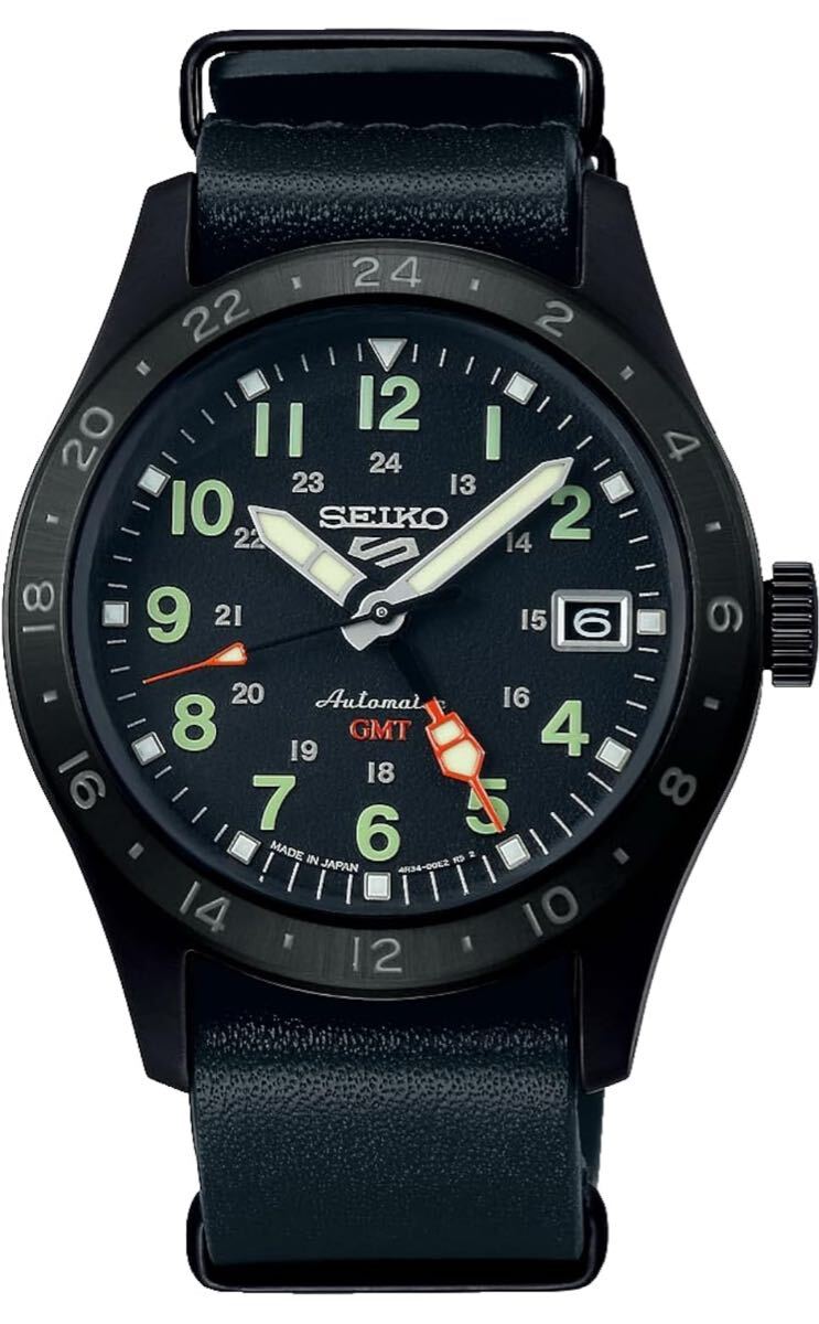 SEIKO5SportsSBSC013新品未使用GMTブラックレザー腕時計