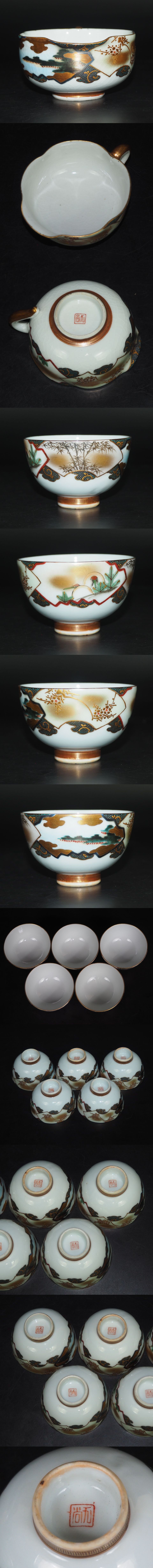 | 商品説明 | 急須 高さ約 8cm 胴径約 8.5cm 幅約 12.3cm 湯冷まし 高さ約 4.3cm 幅約 10×7.5cm 茶碗 高さ約 4.8cm 口径約 7.5cm ご覧のように、時代九谷焼上品茶器揃え7点セットです。質が高い、上品さが感じる逸品です。状態はとてもよい、完品無傷です、詳しくは写真でご確認ください。 |
