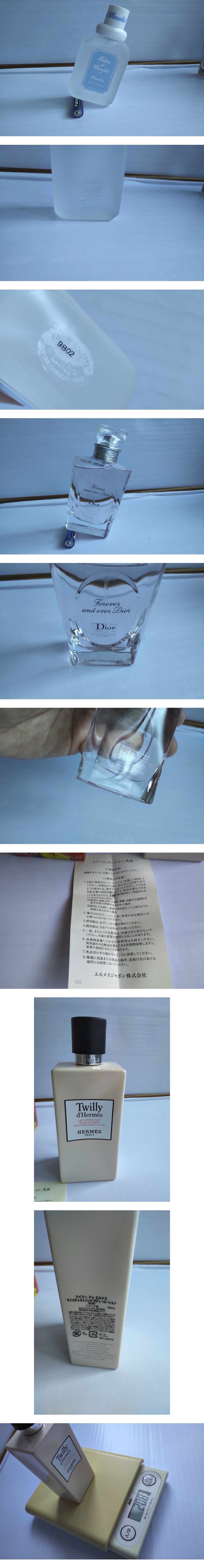 | 商品説明 | ![]() ![]() powered by auction-labo.com オーデトワレ5本+乳液1本、合計6本まとめての出品です。 電池は斜めにする為においてある物ですので、出品物ではありません。 ご参考までに青い電池は単四電池、赤い電池は単三電池です。 ※いずれも肌に合わないときにはご使用をおやめください。 1枚目の画像 向かって左より --------------------------- ■01. Salvatore Ferragamo のEAU DE TOILETTE incanto 30ml瓶 --------------------------- ■02. Lancome のEAU DE PARFUM TRESOR 50ml瓶 --------------------------- ■03. Givenchy のEAU DE PARFUM ange ou demon le secret edition BAL D'OR 50ml瓶 ※発送時、こちらのみ蓋を外した状態、または斜めに倒した状態で発送します。用意した箱をわずかに高さが上回り、無理やり入れると破損の恐れがある為。 --------------------------- ■04. Tartine et Chocolat のEAU DE TOILETTE Ptisenbon 50ml瓶 --------------------------- ■05. Dior のEAU DE TOILETTE Forever and ever Dior 50ml瓶 --------------------------- ■06. Hermes の乳液 Twilly d'Hermes 200mlボトル こちらは未使用かと思われます。中身が見えない為重量を計測、208g程。 --------------------------- 以上、計6本 残量は多目ですが、画像を御覧ください。 画像に写っているものが全てになります。 外箱などは付属しません。 部品の不足・商品の状態等について確認しきれていない可能性もありますので、 画像を必ずご確認下さい。 現状での出品になりますので、 メンテナンスや修理等が必要な場合は 落札者様ご自身で行って頂ければと思います。 上記の内容をご納得頂いてからの入札をお願い致します。 | |
