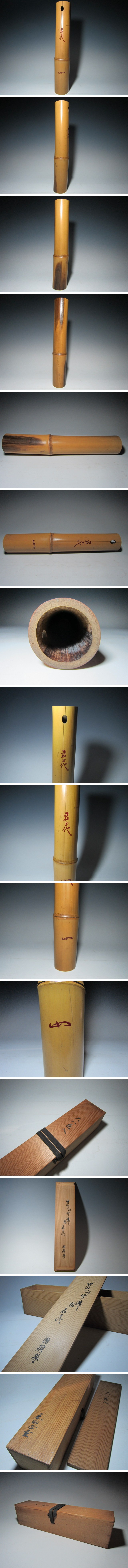 裏千家 十三代 円能斎の箱書があり、「君が代」と銘が付けられています。 サイズ 直径5.5㎝×高さ33.3㎝ (多少の差はお許しください) 状態 丈夫にひび割れが見られますが、使用には差し支えなさそうです。 その他、疵直しは見られません。 骨董品という事をご勘案頂き、時代経過のスレや、窯疵、小さな傷がある場合があるかもしれませんのでご承知置きください。 画像をご覧いただき、気になる箇所がありましたら「質問欄」よりお問い合わせください。 | |||