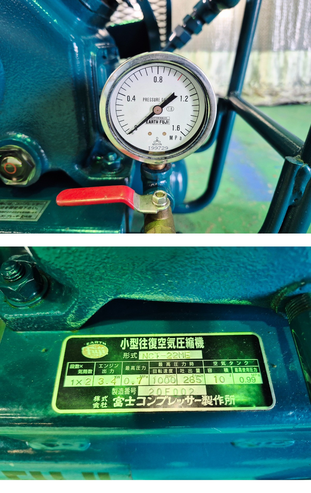 ■メーカー 富士コンプレッサー ■型式 NCT-22M E ■仕様 電動機定格出力 3.4kw(4.7PS) 最高圧力 0.7MPa 吐出し空気量 285L/min 空気タンク容積 10L 外径寸法 幅1025mm×奥行490mm×高さ650mm 質量 102kg メーカーサイト エンジンコンプレッサー 富士コンプレッサー・NCTシリーズ ■状態 ※動作確認は行っております。 ※中古品の為、さび・汚れ等はございます。 ■付属品 ※画像に写っているものが全てです。 |