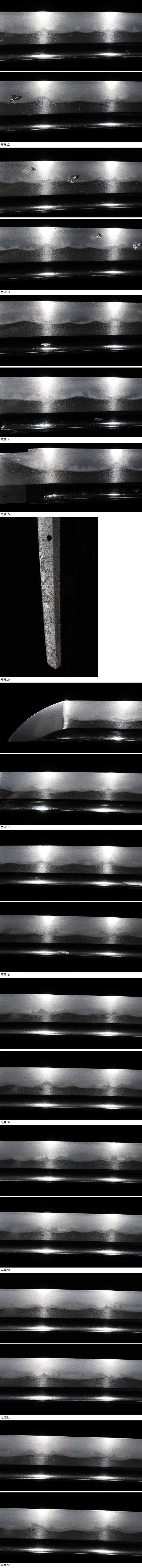 | ■刀剣のサイズ表示について 元幅・・・焼出し付近を測定しております 先幅・・・横手筋付近を測定しております 元重ね・・・焼出し付近の厚みを測定しております 先重ね・・・横手付近の厚みを測定しております (多少の誤差はご容赦ねがいます) ■銃砲類のサイズ表示について 全長・・・銃身先から台木尻までを測定しております 銃身・・・台木を除いて金属部分を測定しております (多少の誤差はご容赦ねがいます) 当社が出品する刀剣類は、入手した時の状態のまま出品しております。 ハバキ、小道具等も当社で調整したり付け替えたりはしておりませんので、合わせではないかというクレームは一切受け付けません。 刀身の疵も隠すことなく載せておりますので写真をよくご覧になってご入札ください。 疵に関して、説明がない等のクレームは一切受け付けません。 写真ではわかりにくい部分は質問欄やお電話でお問い合わせください。 但し、説明欄に表記のない刃切れに関してのみ返品やご相談に応じます。 ※ご落札しご購入されお手元に届いてから20日以内に 登録証に記載されている各都道府県の教育委員会にご連絡し 登録証の所有者変更を必ず行ってください | |||