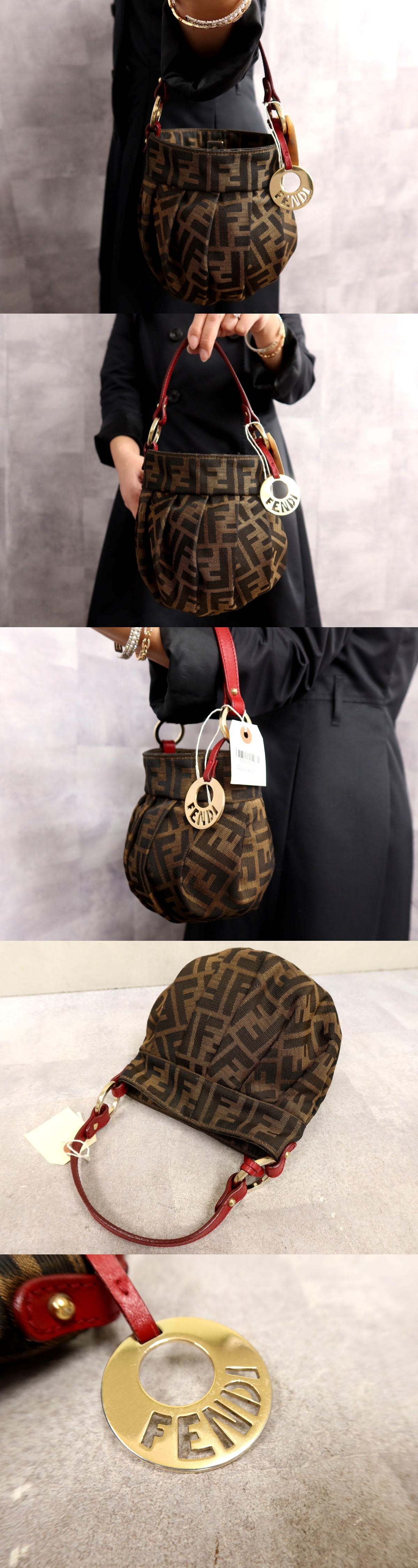 ●美品●FENDI フェンディ●ズッカ●ナイロンキャンバス カーフ レザー 本革●ハンド バッグ●黒 ブラウン レッド●ゴールド金具●Js64349 [浏览原始页面]