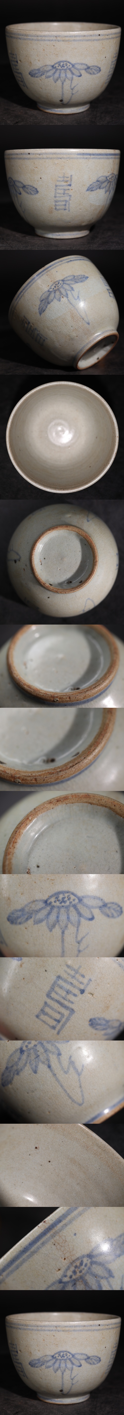 | 時代 李朝 染付 草花紋 茶碗 / 朝鮮古美術 茶器 煎茶道具 煎茶飾 .G3687 |