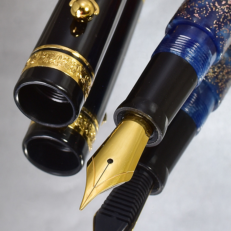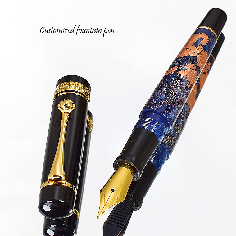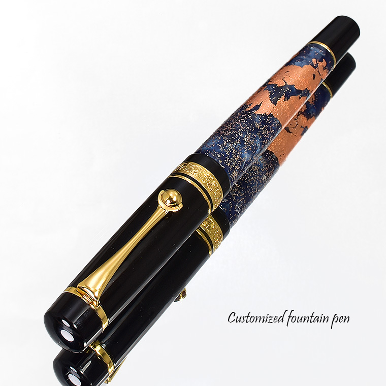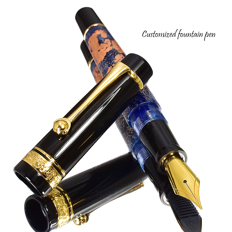 四季彩 ネイビー×ゴールド ミディアム万年筆 こちらに蒔絵調漆塗り 煌びやかな銅箔・ラメ装飾 ハンドメイド作品 ペン先 EF (極細)コンバーター付属 ![]() 今回ご紹介するのは、四季彩ネイビー軸万年筆に漆塗りを施し豪華な銅箔やラメ装飾をのせた ”ハンドメイドカスタマイズ商品”です。 趣のある見事な1本に仕上がっております。 ![]() 胴軸の落ち着いたネイビー軸に漆を塗り、 その上に惜しげもなく銅箔やラメをふんだんに散りばめ、さらに透明の漆を重ねて塗ることで 光沢が出て、豪華絢爛な仕上がりです。 是非一度手にとって、この美しさを堪能してください。 独特な質感は見た目だけではなく、少し浮き上がった感覚の手触りが筆記する際も非常に 心地よいです。少し浮き上がった感覚の手触りが筆記する際も非常に心地よいです。 ![]() 四季彩万年筆の「ネイビー軸 ミディアムサイズ」をベースにしてます。 美しいレジンボディは、海外ブランドのモデルにも引けをとらないと思います。 今回ご紹介するのはミディアムサイズで、キャップを尻軸に挿さなくても、 適度な重量感で快適な筆記を行えます。 ![]() 肝心のペン先ですが、書き味に定評のあるドイツ製JOWO社、スチールニブを採用。 ミディアムは6号となります。 使用用途や好みに合わせてお選び下さい。 コンバーター、カートリッジのどちらも付属しておりますので、ご購入いただいてから、 すぐにご利用いただけます。 *カートリッジはヨーロッパ規格の口径:2.4mmが適合いたします* ![]() 特別仕様のカスタマイズ商品ですので、何か不具合が生じた場合は、 当店にて責任を持ちまして対応させていただきますので、ご安心ください。 こちらの万年筆に興味を持っていただける皆さまの入札を心よりお待ちしております。 どうぞよろしくお願いいたします。 ![]() ***************************************************************** ≪商品詳細≫ 限定 カスタマイズ万年筆 四季彩ネイビー軸ベース 蒔絵調装飾 漆塗り 銅箔・ラメ装飾 ペン先 : ステンレス ドイツ製JOWO社 サイズ : 6号(国産15号)大型 字幅 : EF(極細) 長さ : 145mm(キャップ装着)/135mm(キャップ外した時) 径 : 15mm/キャップ、13mm/ボディ 重さ : 22g キャップ :ねじ込み式(尾栓装着/ねじ込み式) 機構 : カートリッジ(欧州規格)/コンバーター両用式 *カートリッジはヨーロッパ規格の口径:2.4mmが適合いたします* 材質 : ボディ/レジン・工芸漆 キャップ/アクリル樹脂 クリップ・トリム/ステンレススチール製ゴールド仕上げ 付属品 : 簡易紙ケース・コンバーター内蔵・カートリッジ1本 新品未使用 *お使いのモニター、撮影条件などの理由で実際の商品と若干色合いが 異なる場合がございます。 ※新品未使用ですが、加工時に軸以外の金属部分にも漆がついてしまった 箇所がある場合がございます。 また下地の透明色部分にも漆の僅かなはみ出しや 手で触ると僅かに漆の盛り上がり箇所がある場合がございます。 ハンドメイド作品として予めご了承の上、ご入札をお願いいたします。 ***************************************************************** |