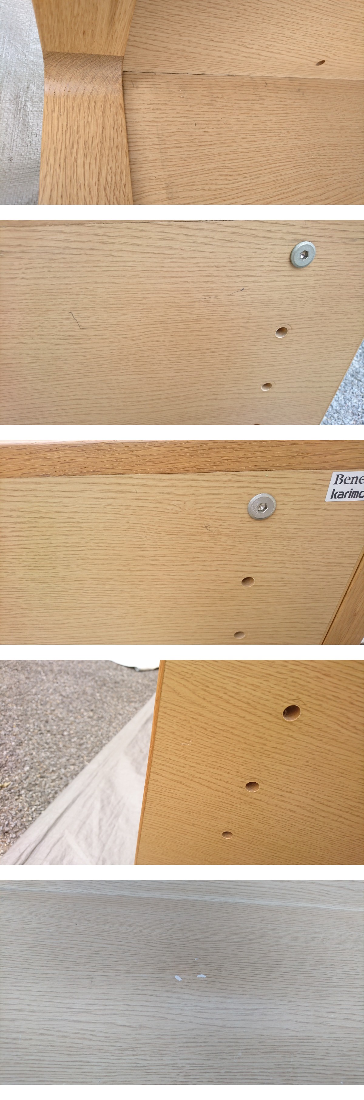 デスクの天板や脚、チェアのフレーム等、外観に傷、小傷等がございます。