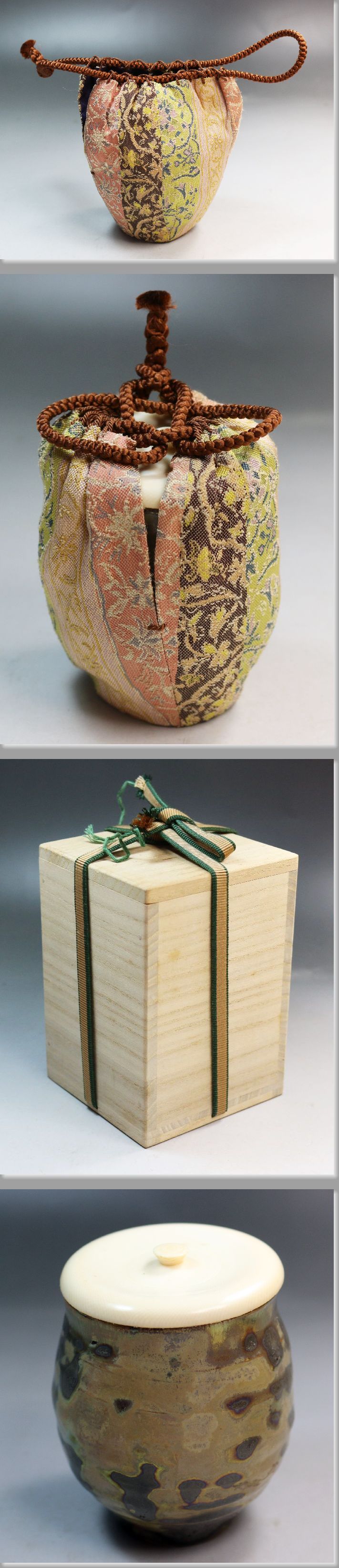 茶道具 濃茶器 銀化肌広口手茶入 仕覆 木箱 をお預かりしまして出品しました。