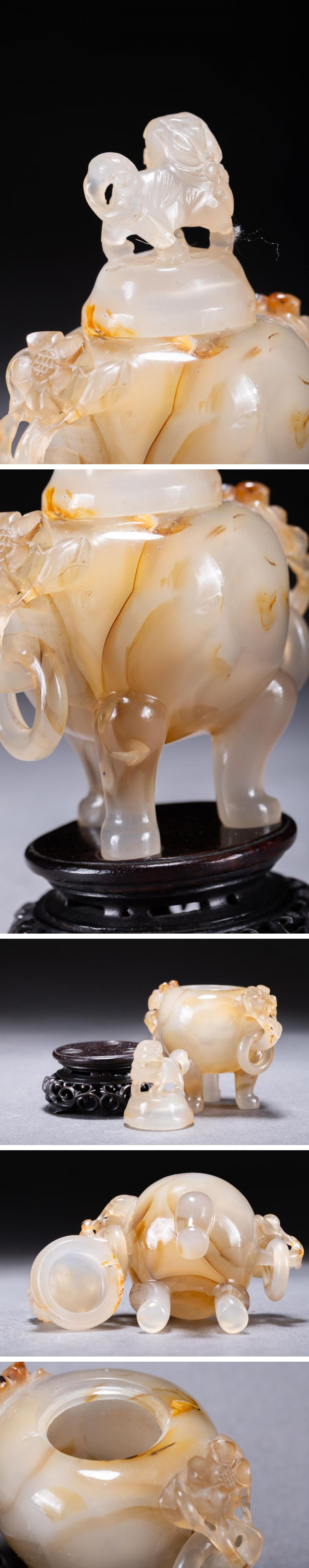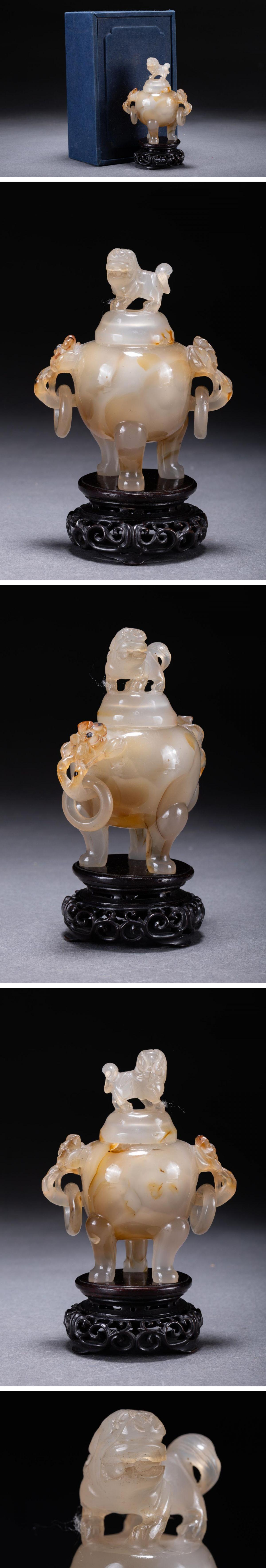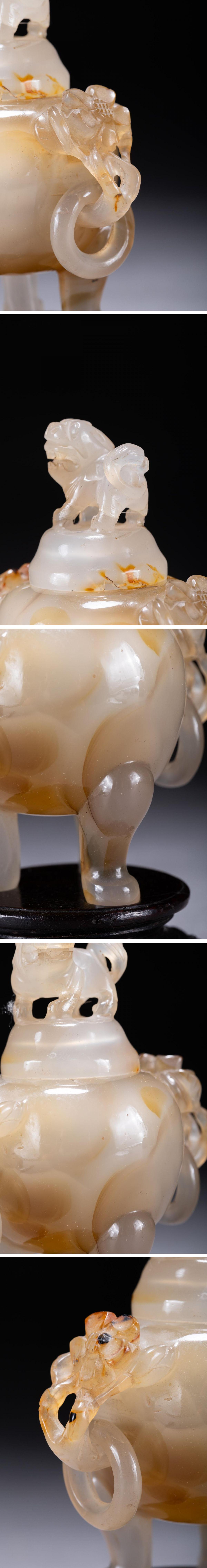 【華】某有名収集家買取品 清時代物 中国伝来 天然瑪瑙 三足香爐 古美術 骨董品A25090150-YQ