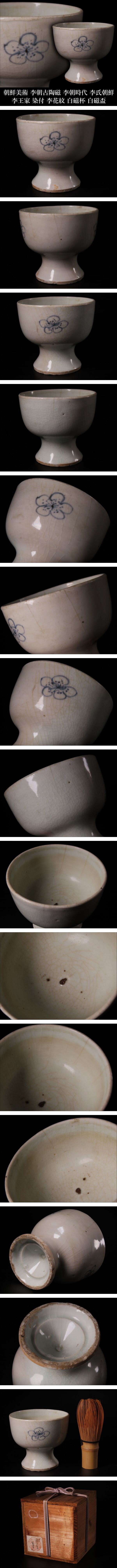 朝鮮美術 朝鮮古陶磁 李朝時代 李氏朝鮮 李王家 染付李花紋 白磁杯 白磁盃 古美術品 | |||