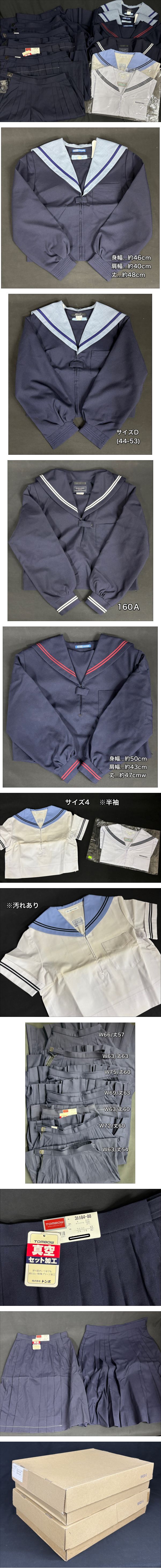 | 商品説明+++ ☆☆御覧いただきありがとうございます☆☆ 必ず最後まで説明文をお読みいただき納得していただいたうえで入札をお願いします。 他にもCDやレコードを出品しています。 商品写真を大量にアップしています。 携帯でアクセスされていらっしゃる場合は写真が全て表示されない場合がありますので、 パソコンでのご確認をお願いします。 スマホでアクセスされていらっしゃる場合は、モバイル表示ではなくPC表示でご確認お願いします。 ※※※※※ プロフィール欄に発送についての注意書きを記載しております。 必ず一度お読みいただいた上で、ご入札をお願いいたします。 ※※※※※ ●日にち指定/時間指定は取引情報のご入力時に取引メッセージにてお知らせ下さい。 (※取引情報入力後の日時指定はお受けいたしかねます) ★★ 衣料品セット ★★ ■他にも同等の衣料品セット等を出品しています。 ※同梱不可です。 衣料品店在庫の未使用品ですが、長期保管のため、畳みジワがあります。 また汚れ、シミ、ヤケなどもございます。 画像にあるものが商品の全てです。 【セーラー服(長袖)】 ・身幅約46㎝ 肩幅約40㎝ 丈約48㎝ ・サイズD(4453) ・160A ・身幅約50㎝ 肩幅約43㎝ 丈約47㎝ 【セーラー服(半袖)】 ・サイズ4(2着) 【スカート】 W66/丈57 W63/丈63 W75/丈60 W69/丈63 W63/丈60 W72/丈60 W63/丈54 こちらの商品について専門知識がありません。 ご質問頂いてもお答えすることができません。 写真を大量にアップしていますので、写真を見てご自身で判断をお願いします。 かなり前の商品ですので、経年劣化による日焼けやシミ・汚れなど 細かいことを気にされる方は入札ご遠慮ください。 商品の細かな状態確認、クリーニングなどはしていません。 すべて現状のまま発送になります。 ●発送について 発送方法は佐川急便(元払い)のみです。 お支払い手続き確認後、出来る限り迅速な発送を心掛けております。 送料についてですが、誤差の返金はできません。 もし請求サイズより1サイズ大きいサイズになりましても追加請求は致しませんので、ご安心ください。 ほかに何か気になることや疑問などありましたら、入札前に必ず質問欄からお願いします。 落札後の交渉などはお受けできません。 ■■送料■■ 発送方法は佐川急便(元払い)のみです。 【北海道】 2,810円 (北海道) 【北東北】 2,340円 (青森・秋田・岩手) 【南東北】 2,220円 (宮城・山形・福島) 【関東】 2,100円 (茨城・栃木・群馬・埼玉・千葉・東京・神奈川・山梨) 【信越】 2,100円 (長野・新潟) 【東海】 1,980円 (静岡・愛知・岐阜・三重) 【北陸】 1,980円 (富山・石川・福井) 【関西】 1,980円 (京都・滋賀・奈良・和歌山・大阪・兵庫) 【中国】 1,980円 (岡山・広島・山口・鳥取・島根) 【四国】 2,100円 (香川・徳島・高知・愛媛) 【北九州】 2,100円 (福岡・佐賀・長崎・大分) 【南九州】 2,100円 (熊本・宮崎・鹿児島) 上記一覧に掲載のない沖縄や離島の方は「ゆうパック着払い」での発送になります。 | |||