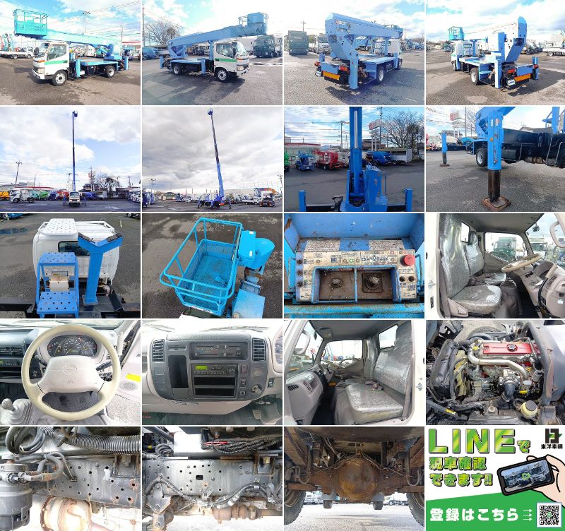 高所作業車 上物:アイチコーポレーション製 上物型式:SK22A 上物同年式 地上高22.1m 水平、平行移動 自動格納機能 首振りバケット 走行4千km台 5速ミッション 中型免許(8t未満)対応車 排ガス適合 タイヤサイズ:215/70R17.5 |