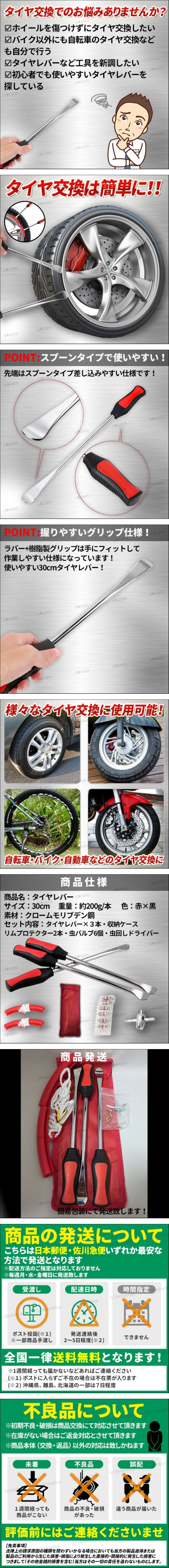 | タイヤレバー タイヤ交換 バイク 自転車 自動車 車 ロードバイク ロング リムプロテクター付き オートバイ レンチ 工具 タイヤ外し 交換 | ||