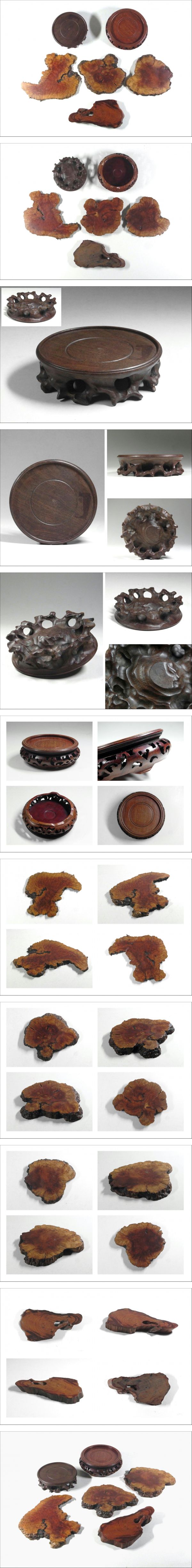 | 商品説明 | 中国美術 瘤杢 円形 黄花梨 瘤花梨 紫檀 香炉台 盆栽台 花台 6個です。 多少の汚れ・擦れ等は御座いますが、状態は良好です。 とても木目・形の良い、見映えのする花台です。 [サイズ] 根木・・・直径10.3cm 高さ3cm 重量174.4g 透かし・・直径cm 高さ4cm 重量139.1g 1・・・・横幅17.3cm 奥行14cm 厚さ0.8cm 重量83.3g 2・・・・横幅14.3cm 奥行12.7cm 厚さ1.3cm 重量114.5g 3・・・・横幅13.8cm 奥行12.4cm 厚さ1.2cm 重量109.7g 4・・・・横幅16cm 奥行8.2cm 厚さ1.4cm 重量65.2g |
