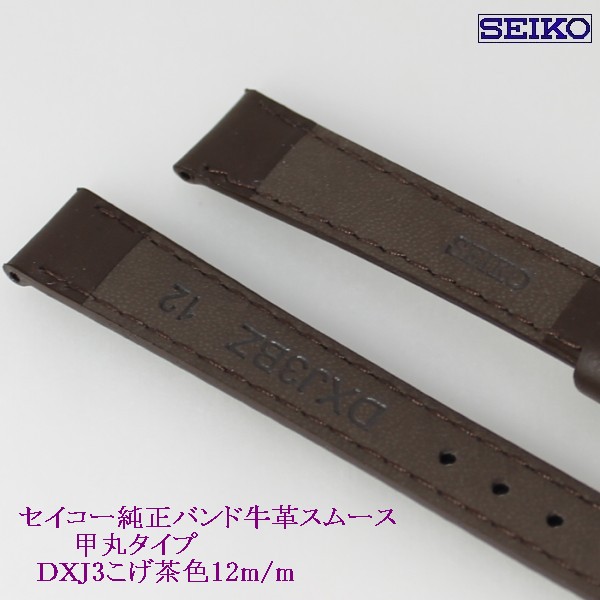 | メーカー商品名:セイコー 牛革スムース (切身はっ水ステッチ付)甲丸タイプ 品番:DXJ3 こげ茶色 希望小売価格:2,420円(消費税込み) かん幅:12m/m 美錠幅:10m/m 厚み:約3.0m/m 色:こげ茶色 バンド材質:牛革スムース (切身はっ水ステッチ付)甲丸タイプ 美錠材質:アルミ(金色) 撮影により実物との 色あいや柄など異なる場合がございます御了承ください。 店頭在庫の為ノークレームでお願いします。 バネ棒: 1セット(2本)250円でお受けいたします。 新品、本物(セイコー正規品) |