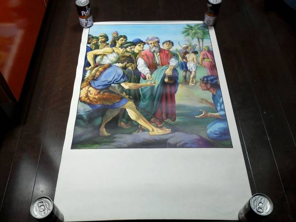 【商品説明】こちらの商品は、旧約聖書のポスターになります。閉園されたカトリック系の幼稚園から譲り受けた物です。1960年代の物です。 経年による汚れ、スレ、端々の破れ、シミ、色褪せ、折り目等ございますので神経質な方はご遠慮下さい。お詳しい方お願いします。サイズは タテ約83cm×ヨコ約52.5cm発送についてですが、定形外郵便(保証無し)、ゆうパックでの発送を予定しております。下記の注意事項をご覧になり入札されて下さい。※入札後のご連絡は48時間以内にお願いします。ご連絡がない場合取り消させて頂く場合がございます。※経年による汚れ、スレ、小傷、シミ等ございますので神経質な方はご遠慮下さい。※新規の方や悪い評価の方は、入札を取り消す場合がございますのでご了承下さい。入札される場合はご連絡下さい。※商品に関して質問、疑問点などございましたら入札前に質問欄からお願いします。※仕事の都合上ご連絡が遅くなる場合がございますのでご了承下さい。※ご質問に電話番号やメールアドレス等記載されていた場合は回答は控えさせて頂きます。(回答すると公開される為)